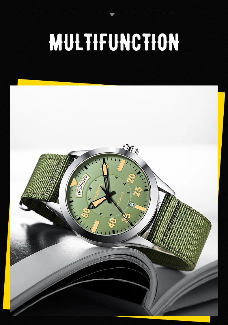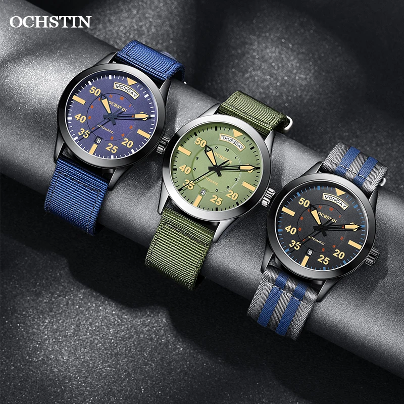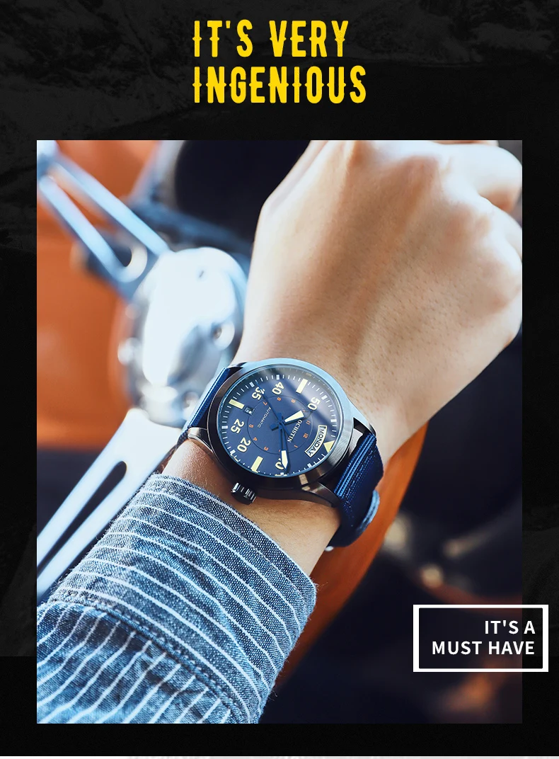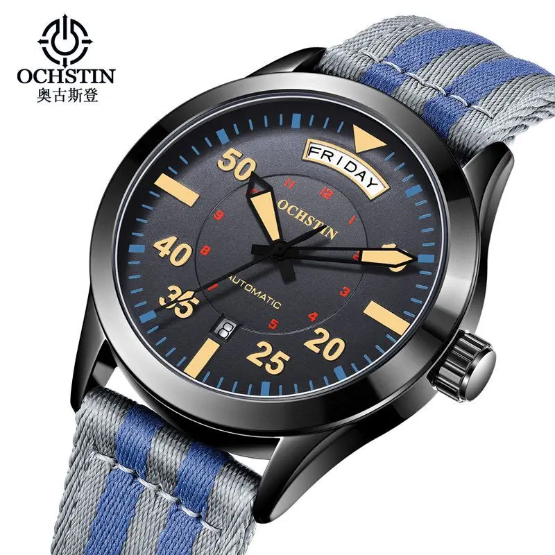 Часы мужские механические водонепроницаемые, с нейлоновым ремешком