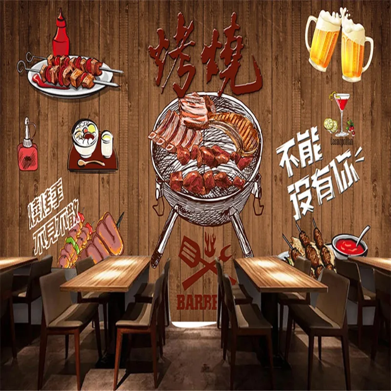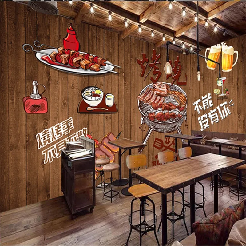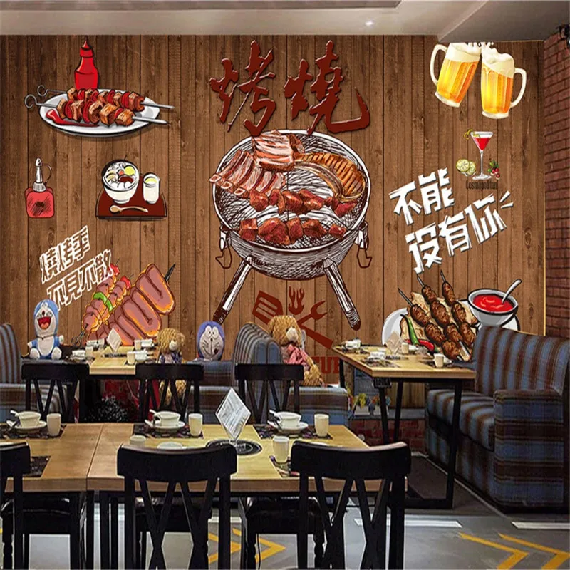 Пользовательские барбекю пивной ресторан фон настенная бумага 3D барбекю магазин снэк-бар промышленный Декор настенная бумага Papel де Parede 3d