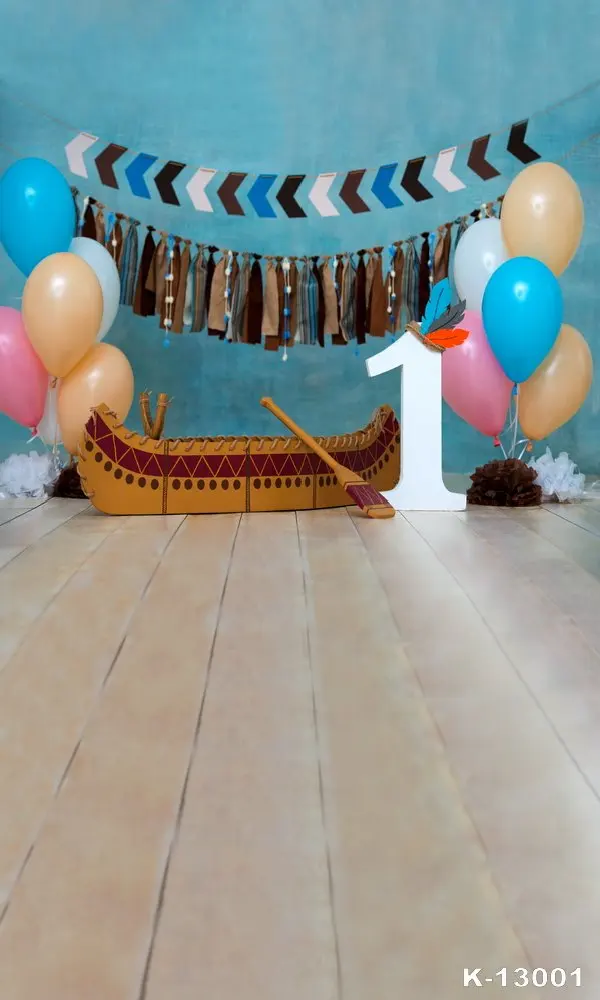 Фон для фотосъемки на первый день рождения, воздушные шары, деревянный пол, стрелы, индийские перья, каноэ, милые вечерние детские фоны для фотосъемки