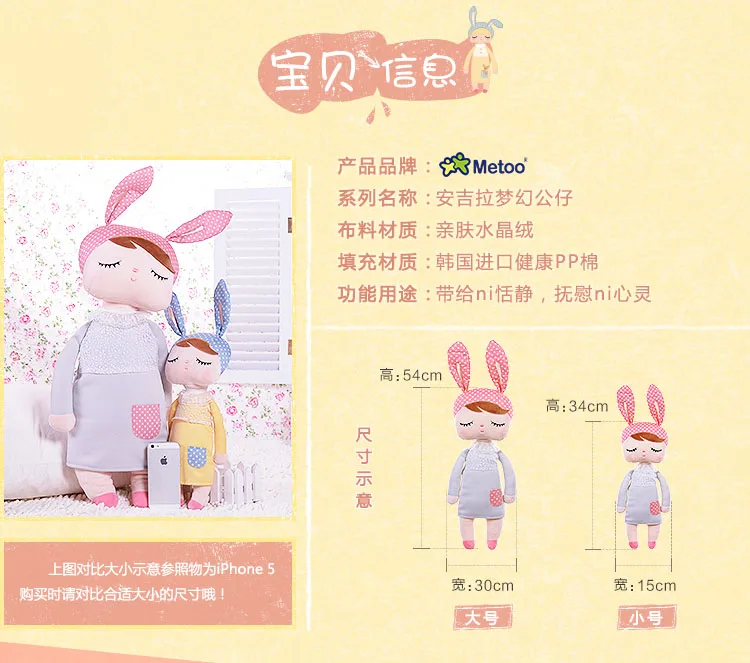 Набор плюшевых кукол Metoo 4 шт. мягкие игрушки 1 шт. 34 см 1 шт. 18 см 2 шт. 15 см Милая ангела