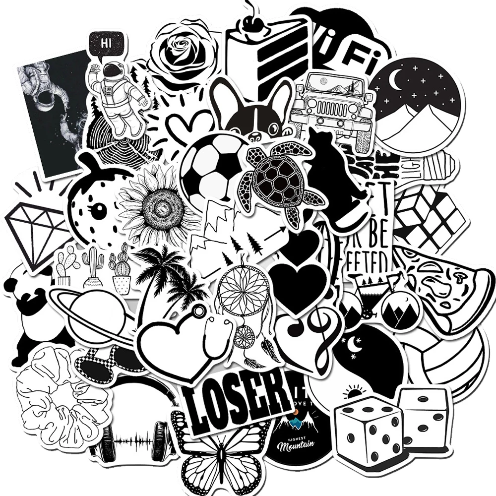 50 шт. черно-белая наклейка металлик s граффити наклейка для ноутбу...