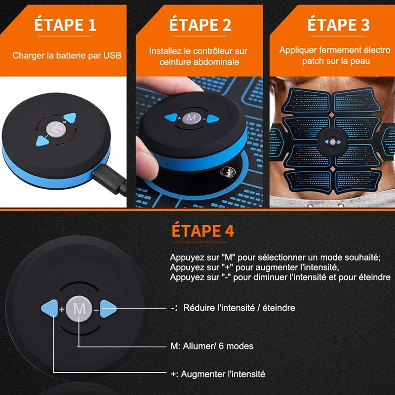 USB Перезаряжаемый ems электрический стимулятор мышц живота с 6 режимами и 10 частотами тока для удовлетворения ваших ежедневных упражнений.Режим 1-2 ток НИЗКИЙ, он предназначен для сжигания жира;3-4 режима тока умеренный, это лучше для роста мышц;Модный ток 5-6 является сильным, он обеспечивает сильные эластичные движения для укрепления мышц вашего тела.Выдвижной usb-кабель 3-в-1 эффективную зарядку: отличается от других продавцов.Укрепляет и подтягивает мышцы.Технология электрической стимуляции мышц (EMS).При полной зарядке (время зарядки около 30 минут) Он используется для 3 раз (время работы составляет 20 минут).