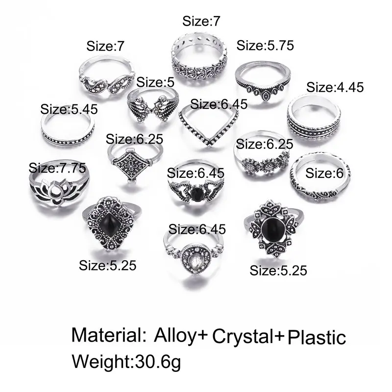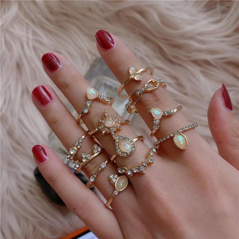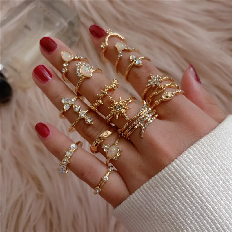 Набор Колец KSRA в стиле бохо Женский, ювелирные украшения в стиле бохо с декором бабочка, месяц, звезда, суставы, кристалл, геометрический дизайн