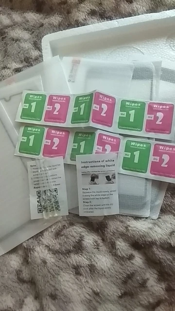 Всё получил как и заказывал - 3 пары стекол для трех телефонов. В комплекте все салфетки и спирт. Или не спирт... Нужно переводить с английского. Трек отслеживался на всем пути. Заказ был отправлен быстро, так же быстро и пришел. Упаковано всё хорошо, в пенопластовую коробочку. Спасибо продавцу.