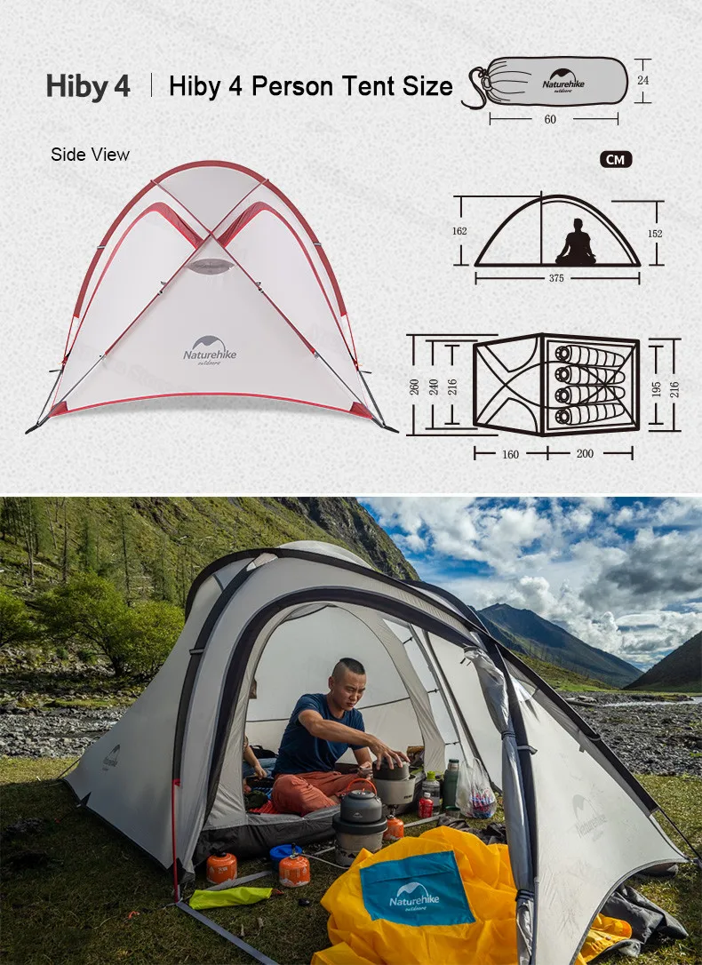 Палатка для кемпинга Naturehike Hiby 3, на 3-4 человека, сверхлегкая, для активного отдыха, семейная, для путешествий, на 4 сезона, 20D, водонепроницаемая, портативная, NH17K230-P