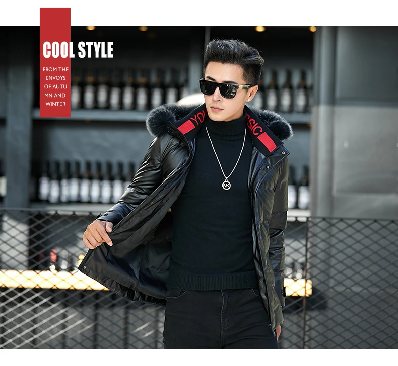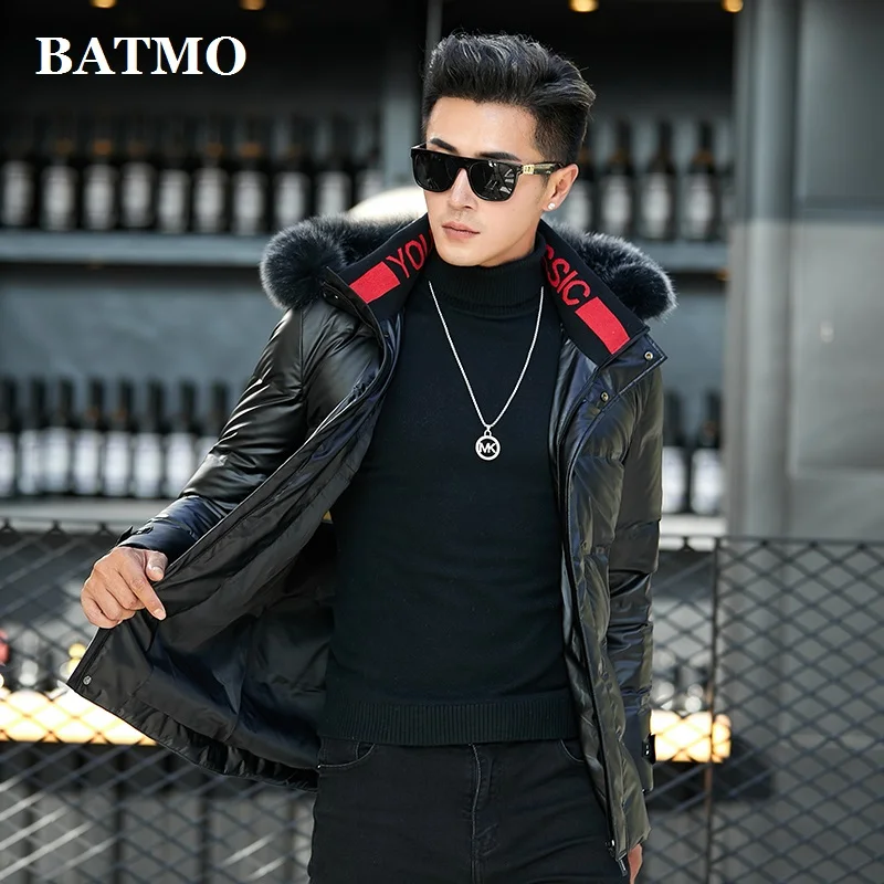 Мужская куртка BATMO на 2021 пуху белой утки с капюшоном, с воротником из лисьего меха, теплая куртка больших размеров 90%, M-4XL