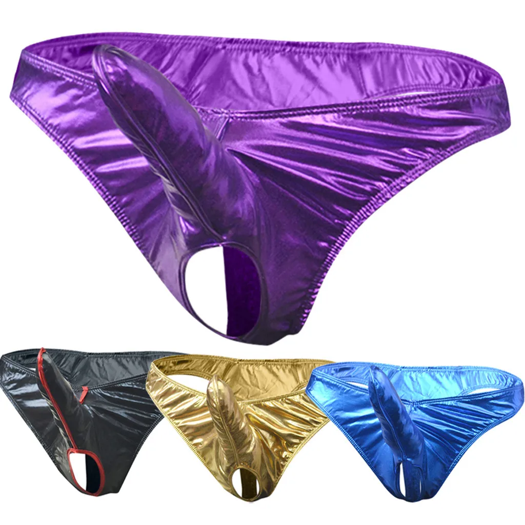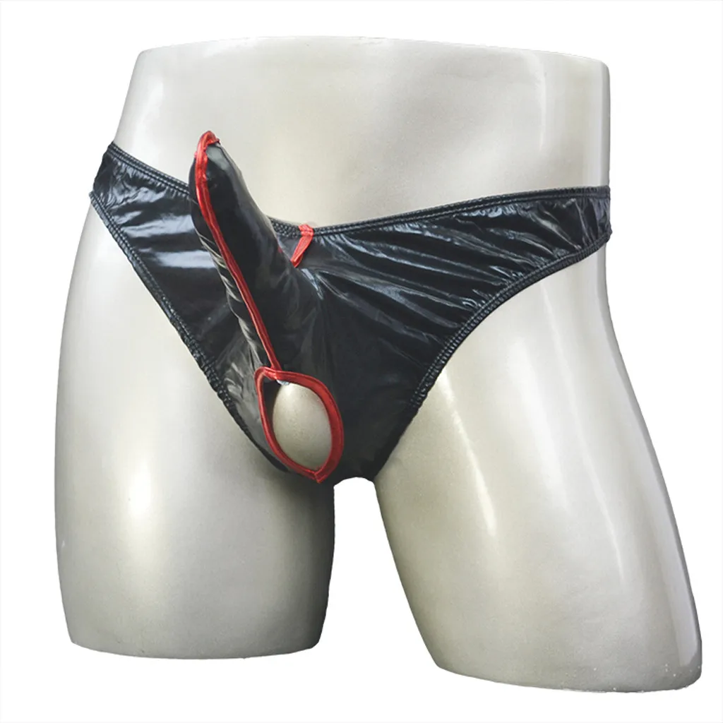 Мужские трусы из лакированной кожи, с вырезами, однотонные брифы с карманом для выпуклости и низкой талией