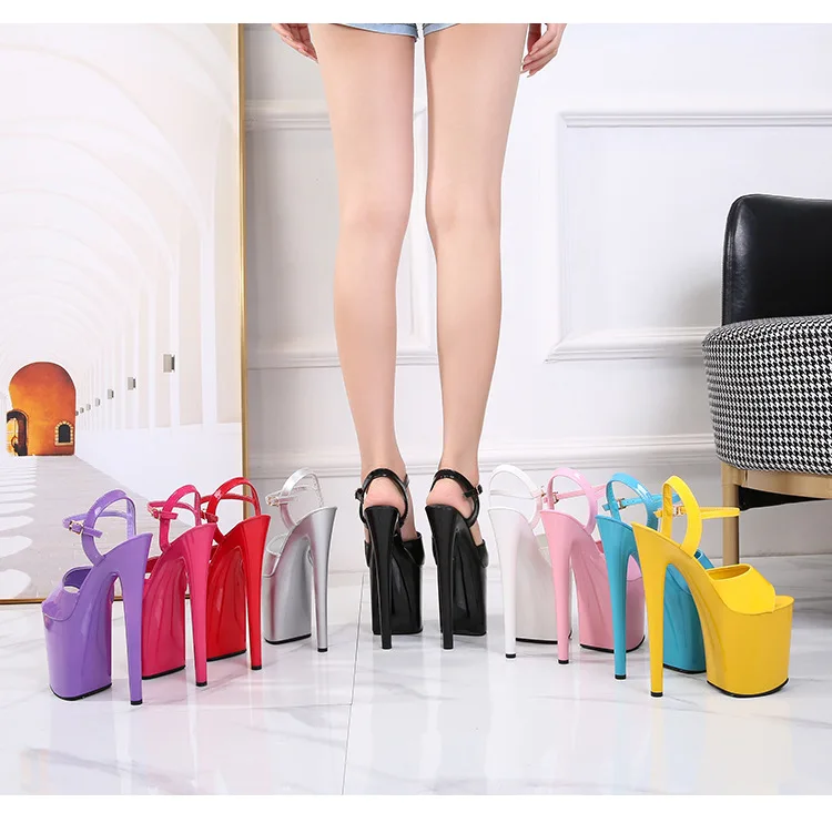 Сандалии на платформе 20 см из лакированной кожи пикантные босоножк...