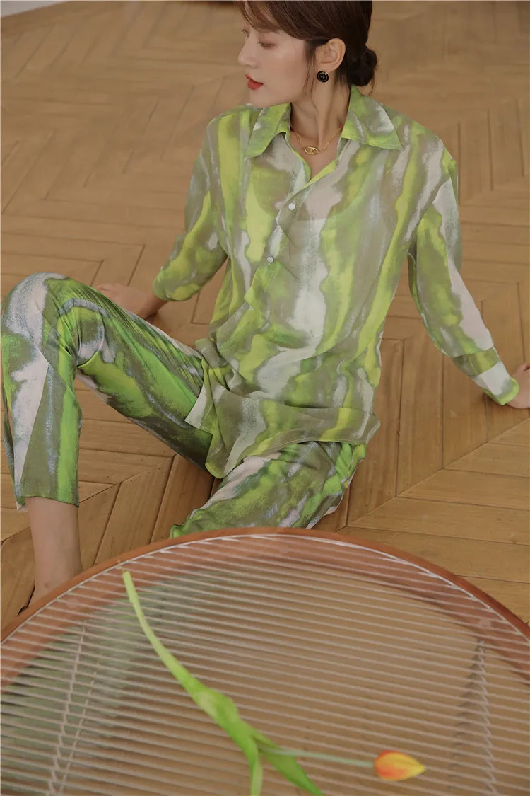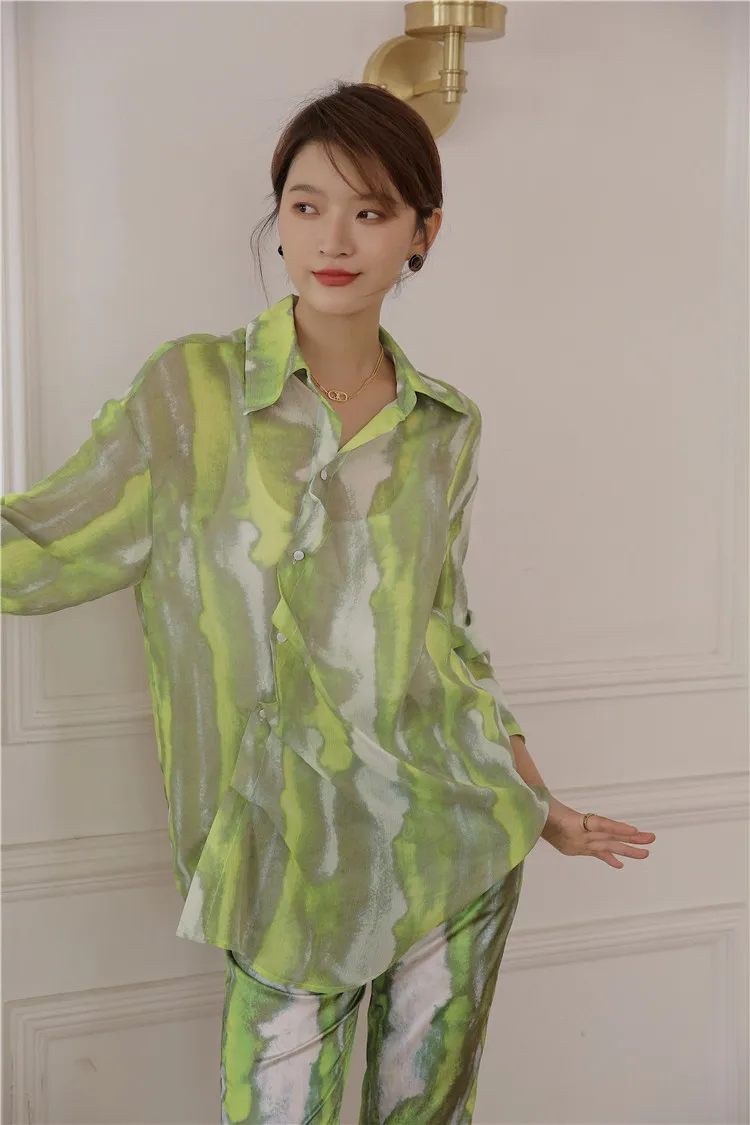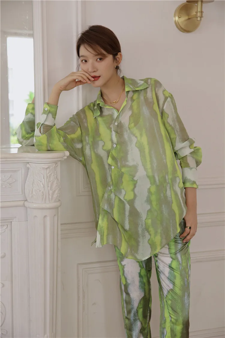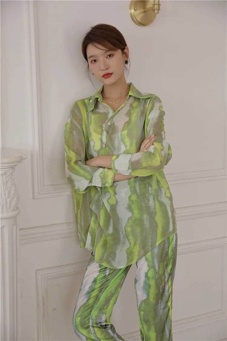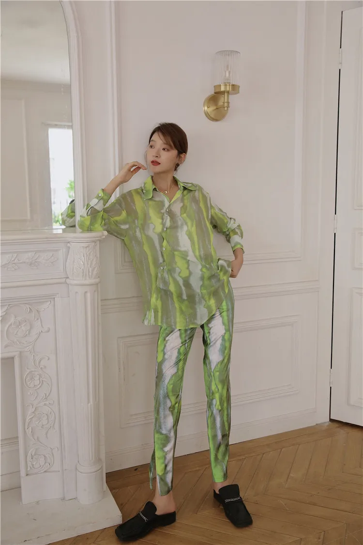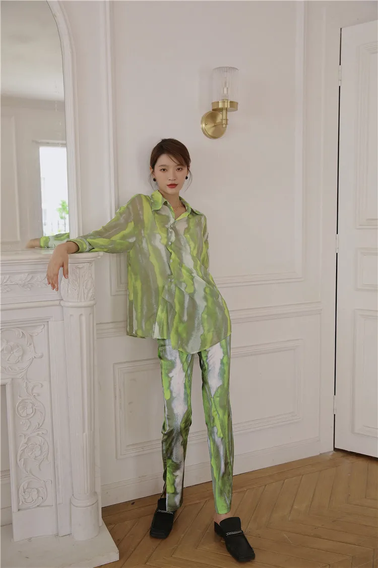 Брюки CHEERART женские с разрезом на подоле, зеленые шелковые прямые штаны из вискозы, с завышенной талией, уличная мода, осень 2020