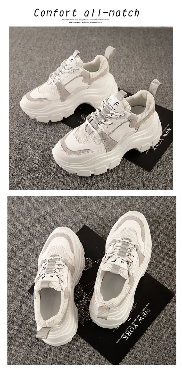 Кроссовки женские на толстой подошве, Вулканизированная подошва, сетчатые, на шнуровке, Повседневная прогулочная обувь, белые