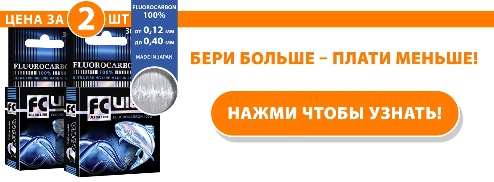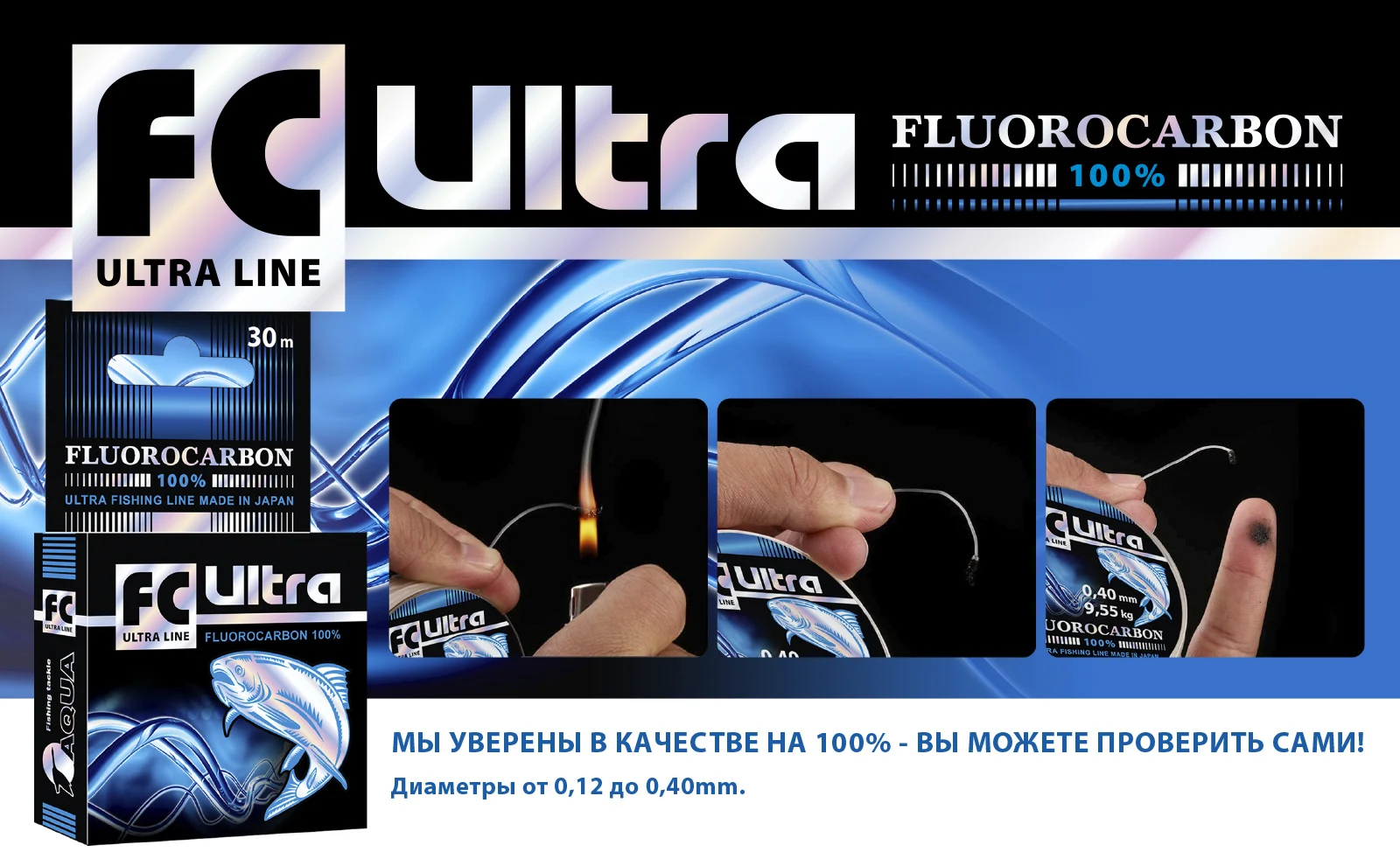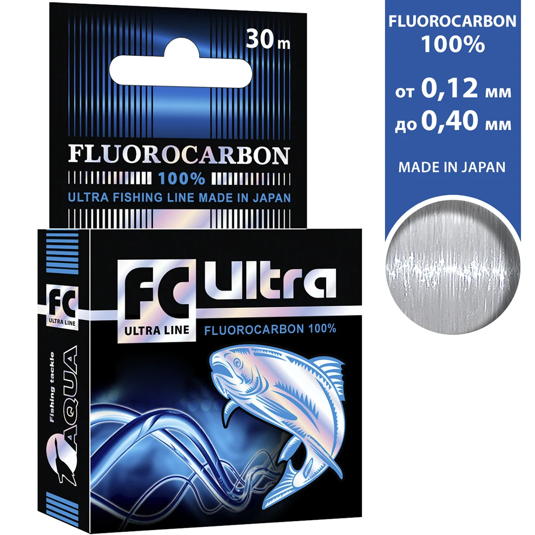 Леска рыболовная AQUA FC Ultra Fluorocarbon 100% (Флюорокарбон 100% ) 30m, от 0,12 до 0,40mm, тонущая, Бесплатная доставка по РФ