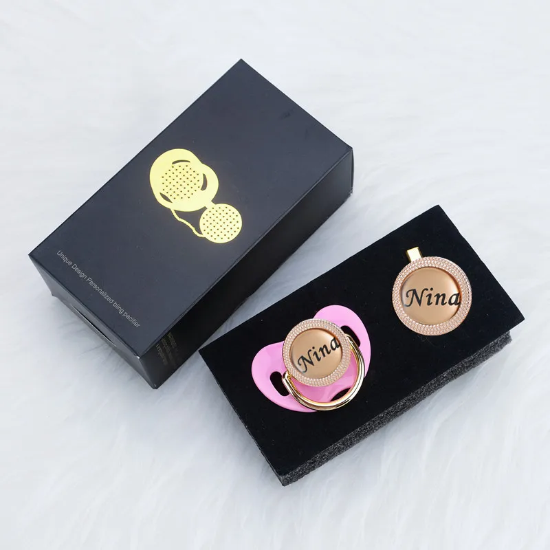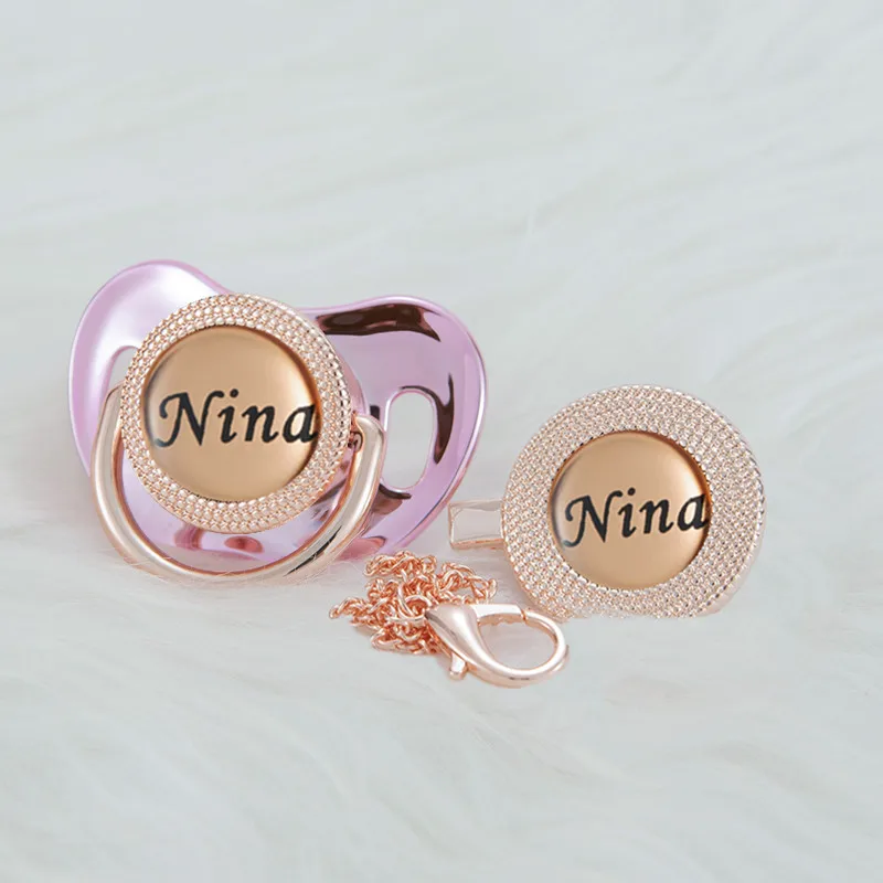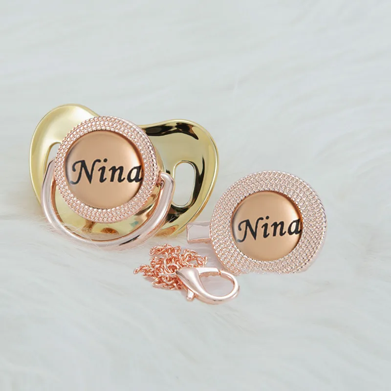 MIYOCAR персонализированные любое имя Розовое Золото шикарные соски и соски клип BPA бесплатно пустышка роскошный уникальный дизайн соски PPG-R
