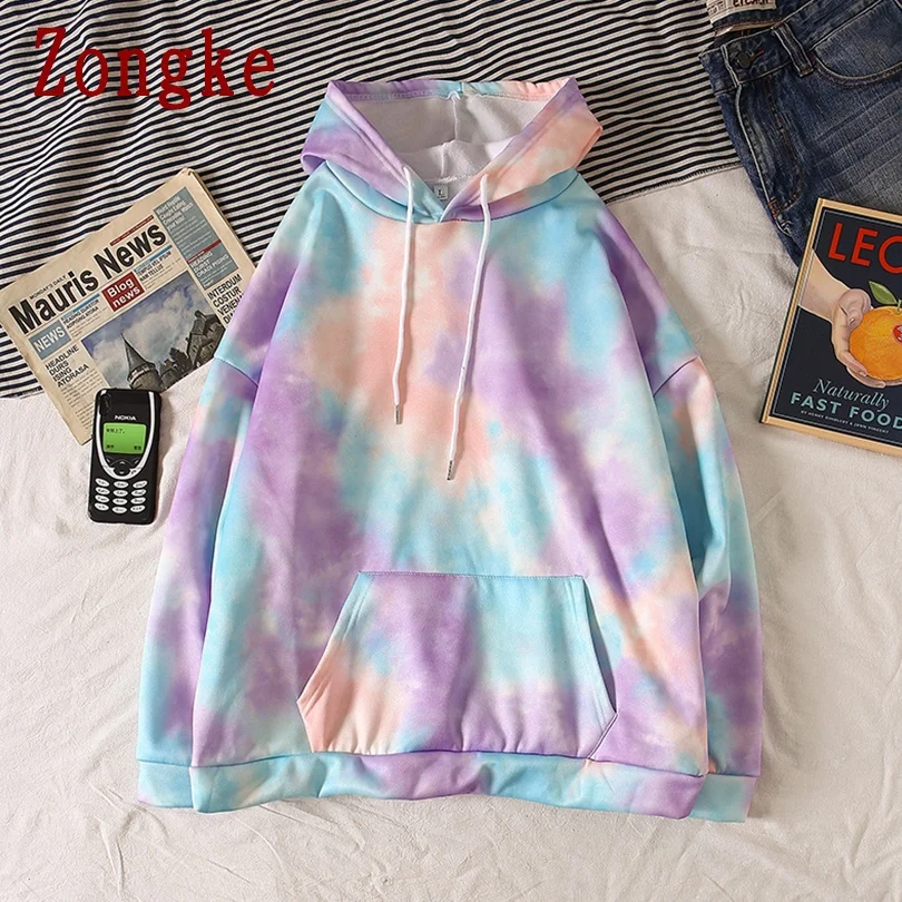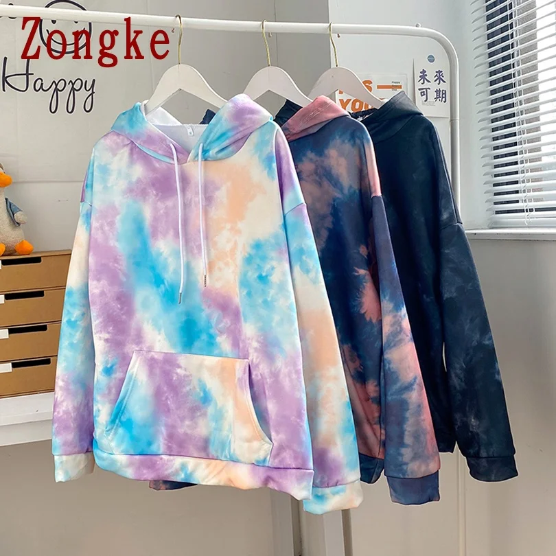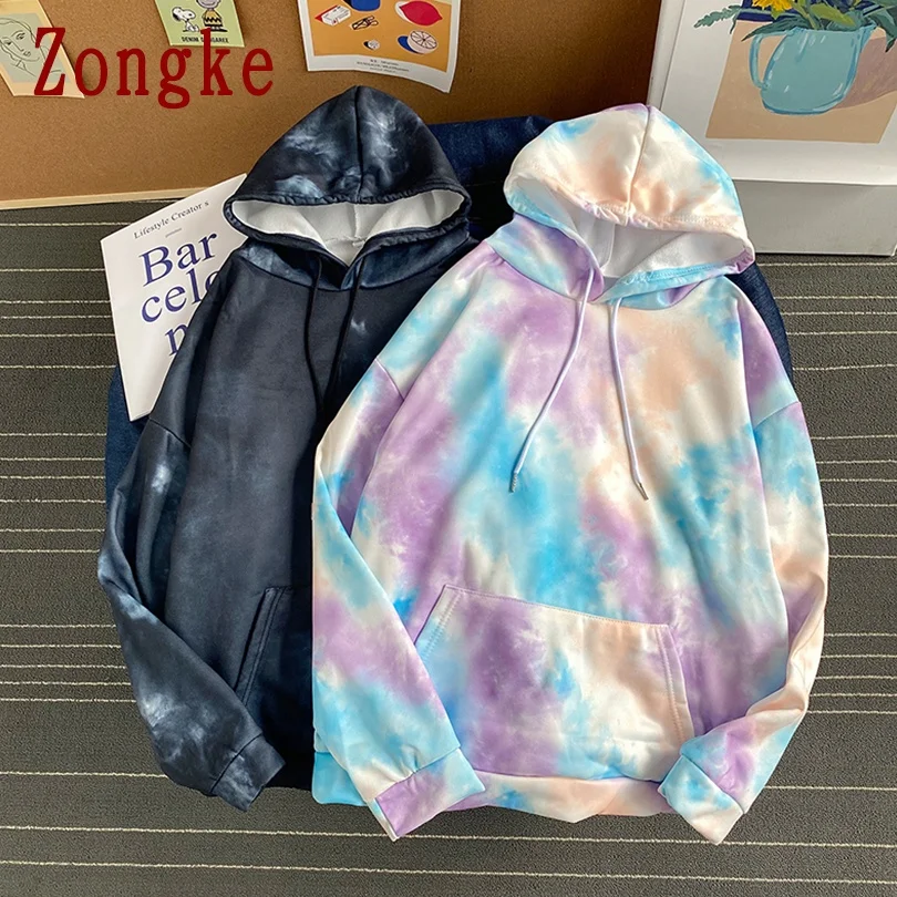 Zongke 2021 Повседневная Толстовка с принтом тай-дай мужская одежда полиэстер Харадзюку хип-хоп Свитшот Японская уличная одежда M-2XL