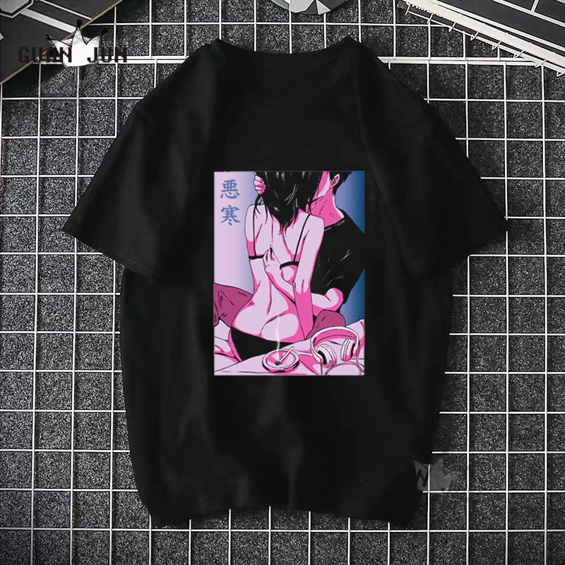 Футболка мужская в стиле аниме 90-х80-х, уличная одежда в стиле Харадзюку, неоновая футболка с графическим принтом в стиле хип-хоп, мультяшная одежда