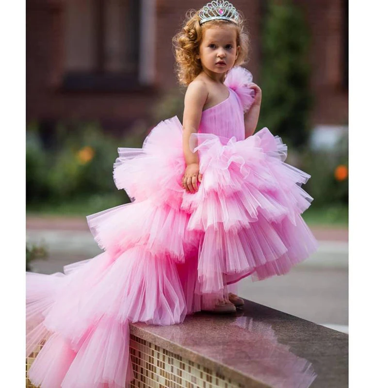 Пользовательские Платья для девочек на одно плечо, Многоярусное фат...