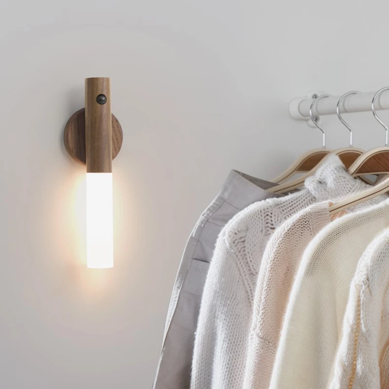 Деревянная Светодиодная лампа с умным датчиком, настенный светильни...