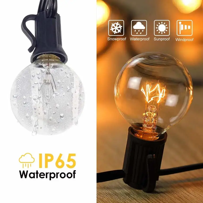 Гирлянда G40 с 20 лампочками, Рождественский шнурок с круглыми лампочками для внутреннего дворика, уличное праздничное украшение, свадебное и праздничное украшение