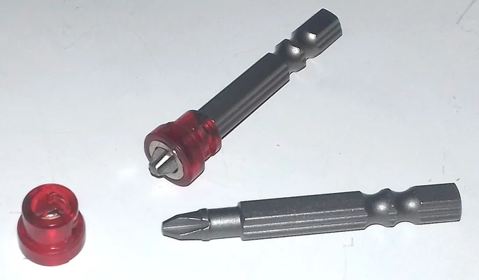 Этот заказ не получил! Два других получил. Втулка с магнитом из пластика-При заказе не разглядел, очень хлипко выглядит. Свободный ход маленький, не ко всем шурупа касается шляпы! На другую биту не налезет, эта бита проточена. Мне не нравиться и другим не советую!