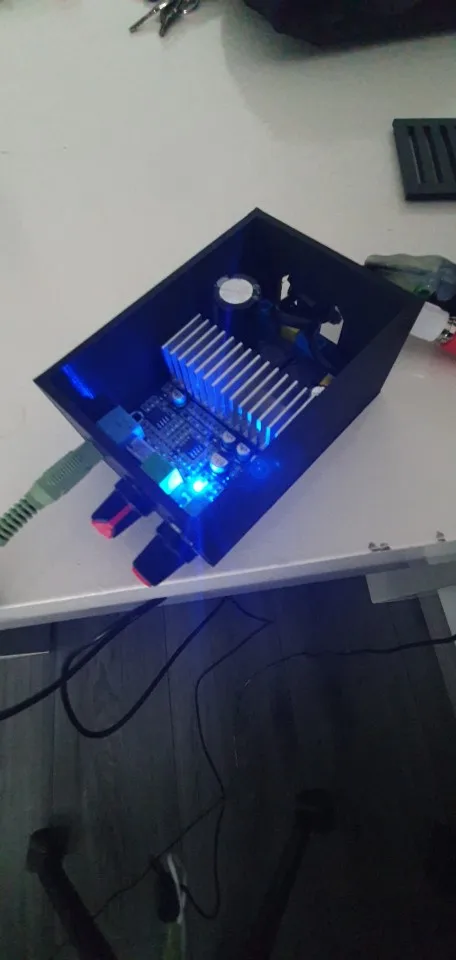 Отличный усилитель для моего стула! Я использую простой 3,5 разветвитель для разделения аудио от выхода. 3d напечатал хороший чехол для него и соединил его с 20v портативным питанием. Я хочу купить еще один жилет, который я планирую сделать.
