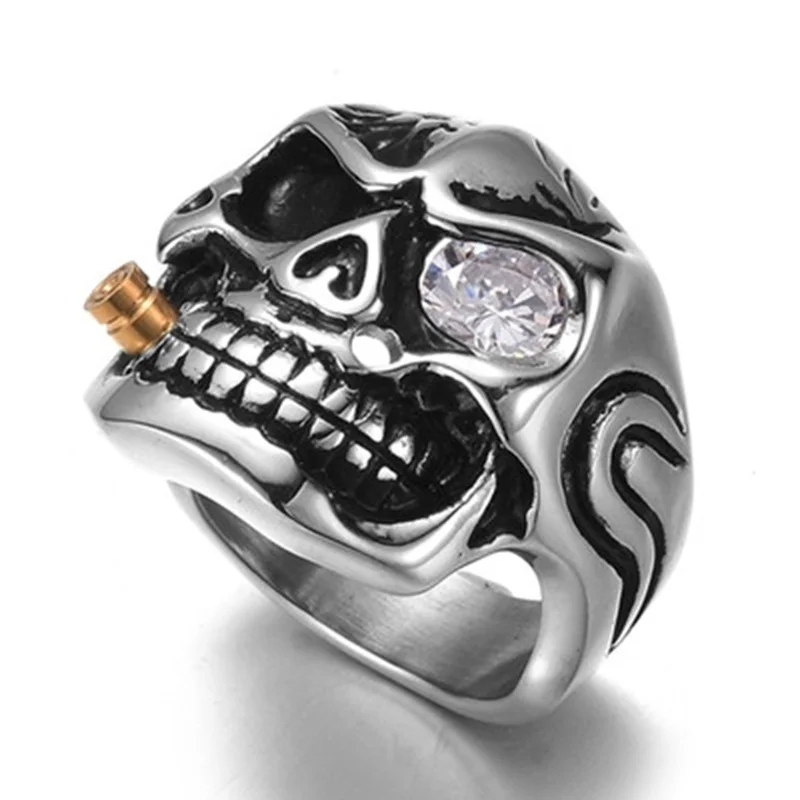 Модные курение сигар череп мужские кольца с цирконием, пуля в виде ...