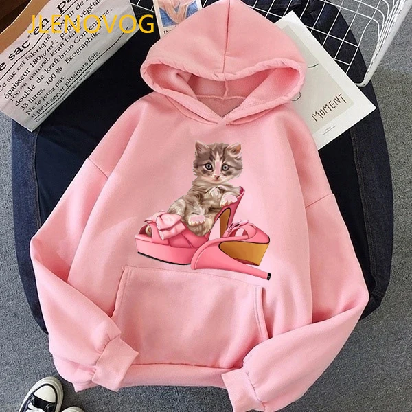 Женская толстовка с капюшоном, розовая толстовка с принтом бумажный...
