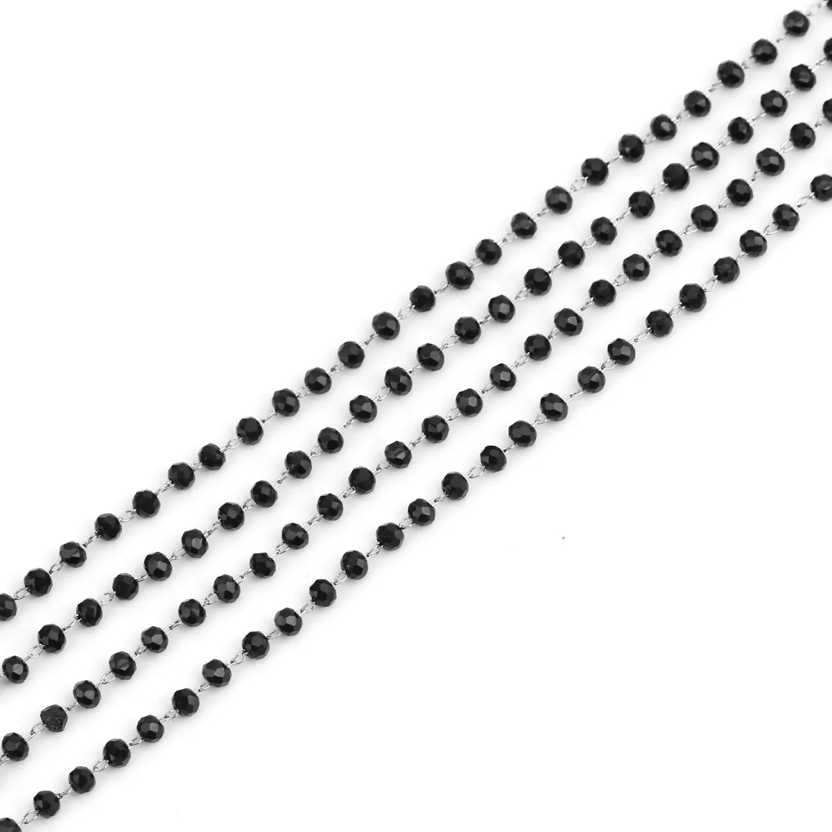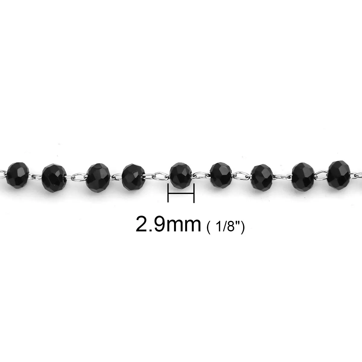 Цепочка из нержавеющей стали 304, Черные Хрустальные стеклянные бусины, звено для кабеля, цепочка серебряного цвета для изготовления браслетов, ювелирных изделий своими руками, 3,4x2,9 мм, 1 м