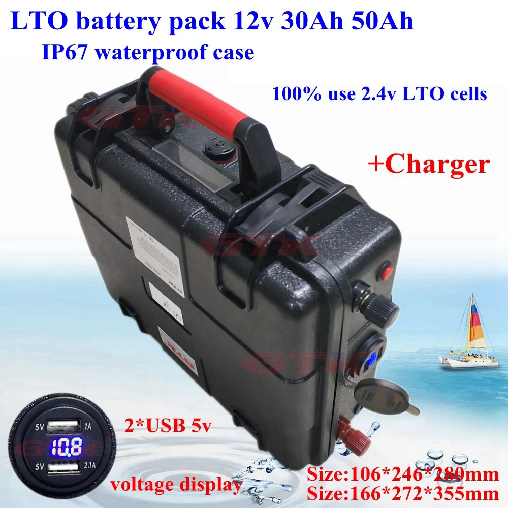 1. 12v 50Ah 60AhЛития LTOБатарея с Водонепроницаемый Чехол, BMS встроенный