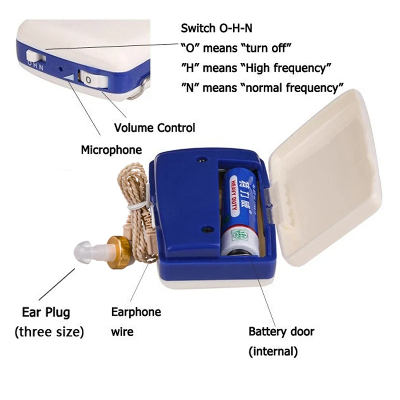 відповідає опису. працює. батарейки в комплекті немає. для літньої людини не зовсім зручний принцип вмикання - кнопку треба пересунути не з одного боку в інший, а в середину (положення H), клацання немає, треба ловити потрібне положення. посилює звук досить потужно. регулятор зручний