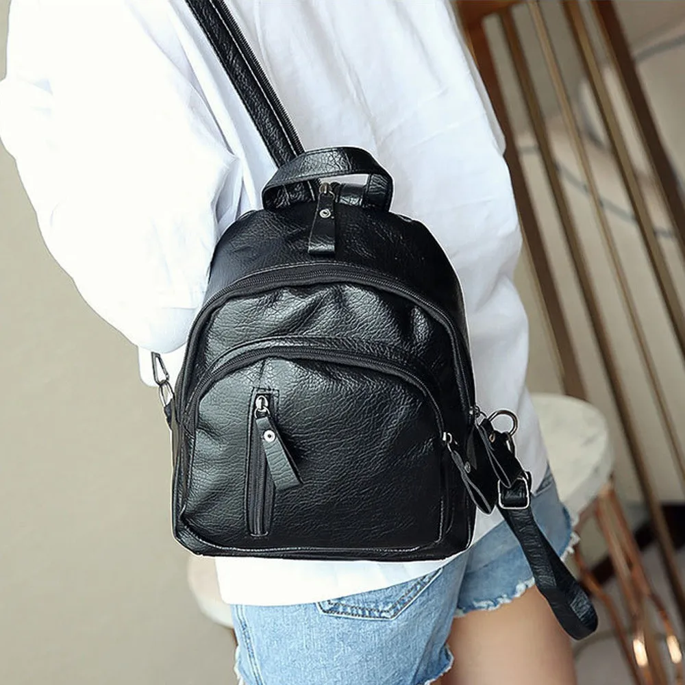 Новый женский рюкзак из искусственной кожи, дорожная сумка через плечо, Многофункциональный маленький школьный рюкзак для девочек, черный