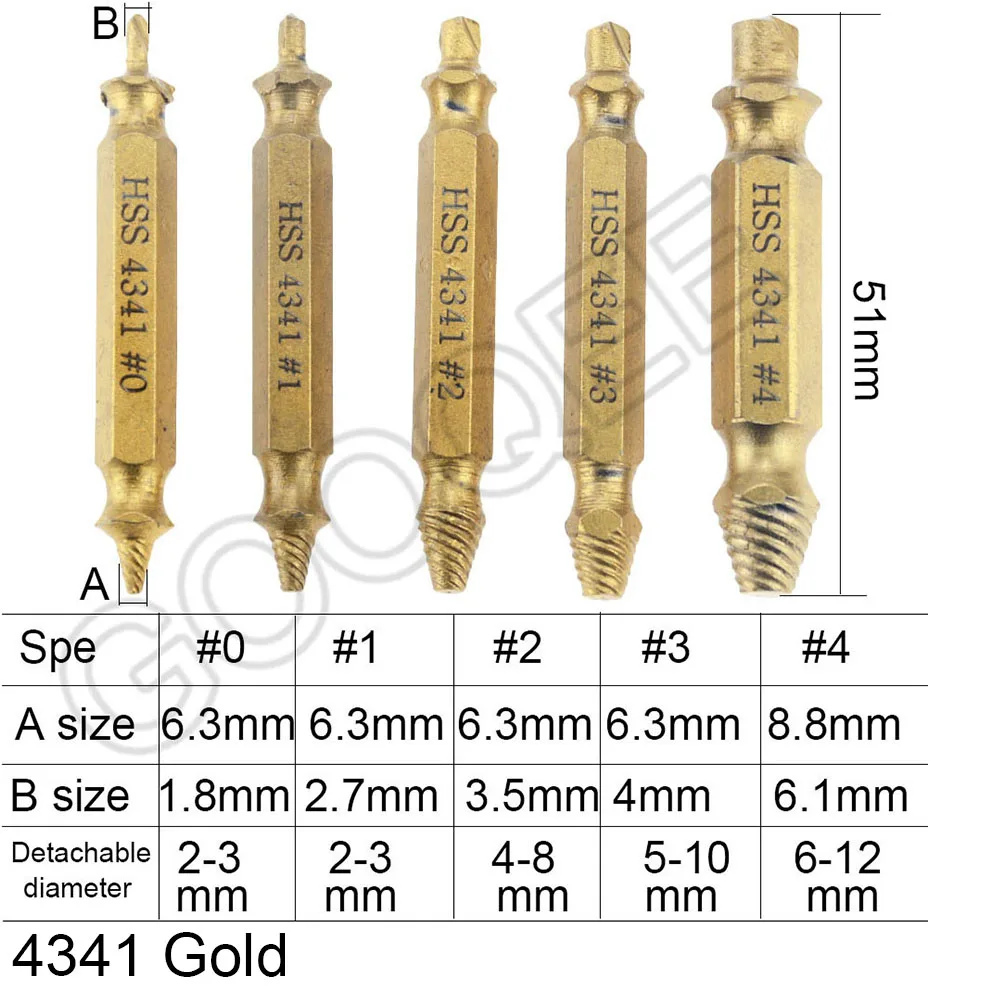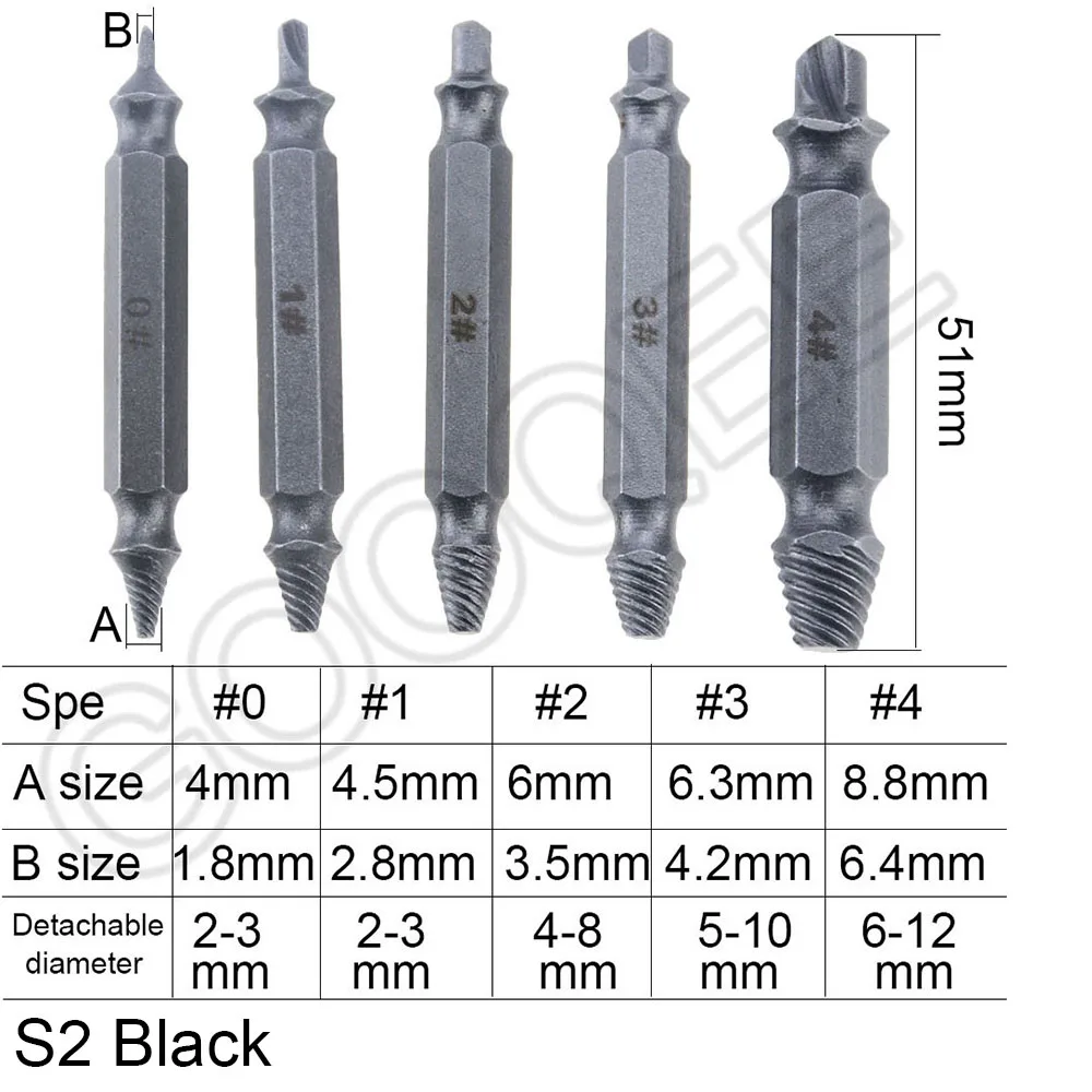 Двухсторонний экстрактор поврежденных винтов, 5 шт., 4341 или S2, #0, #1, #2, #3, #4, для удаления сломанных болтов, шпилек, сорванных винтов
