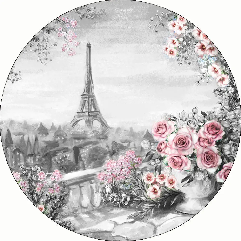 Allenjoy с оригинальными рисунками "Парижская башня зеленый акварель круглый фон с цветами для маленьких девочек на дни рождения, особые события обои фон для фотосъемки с изображением баннера