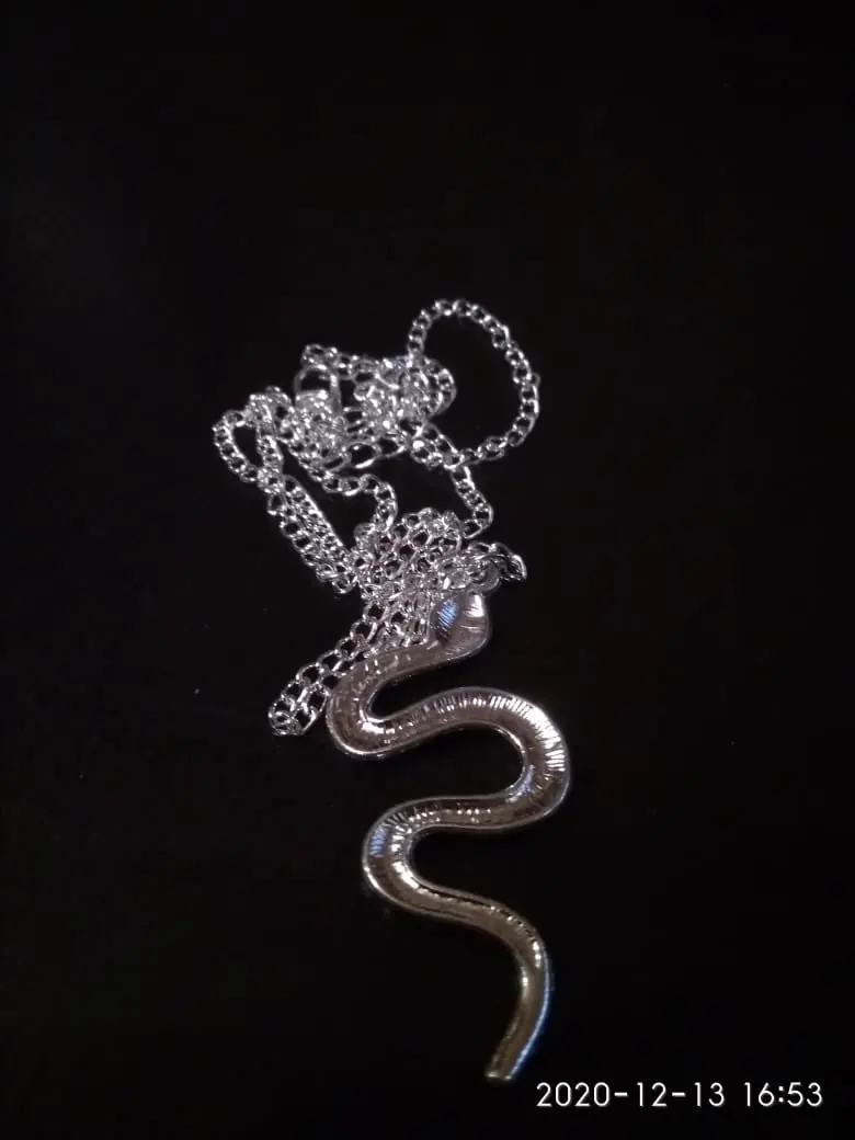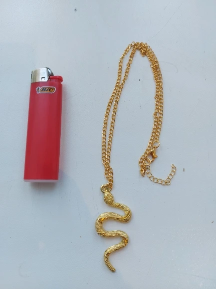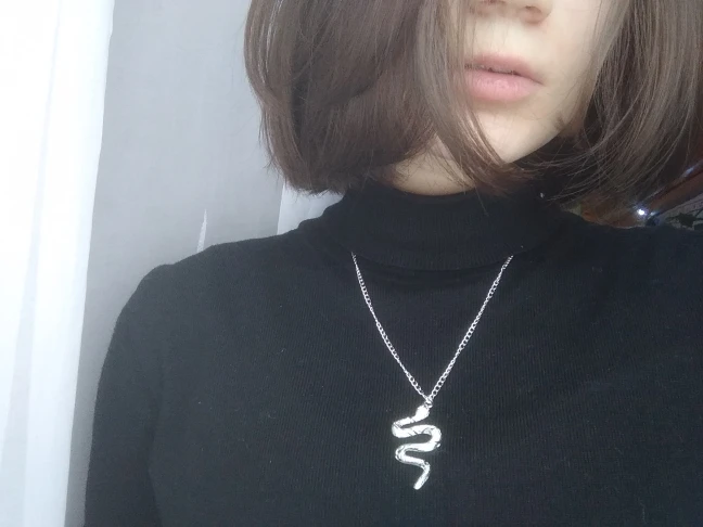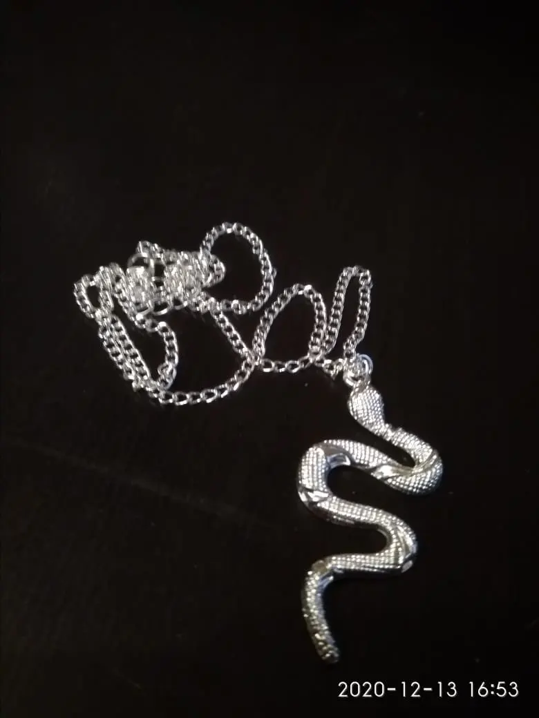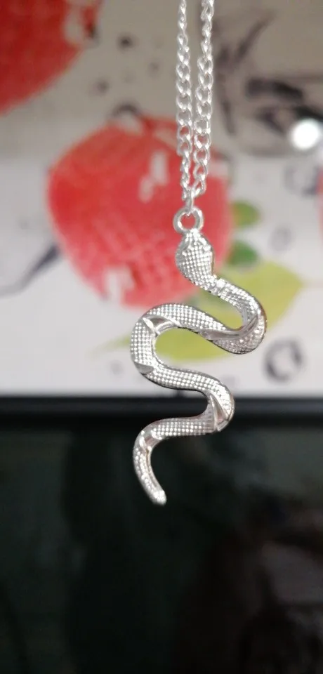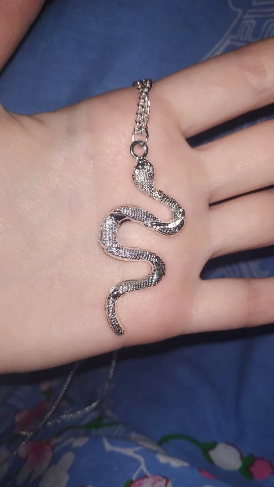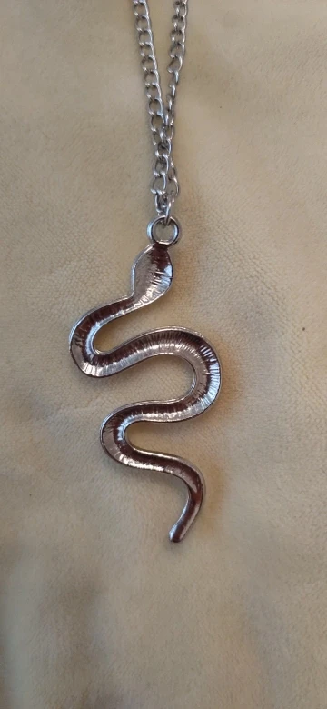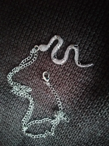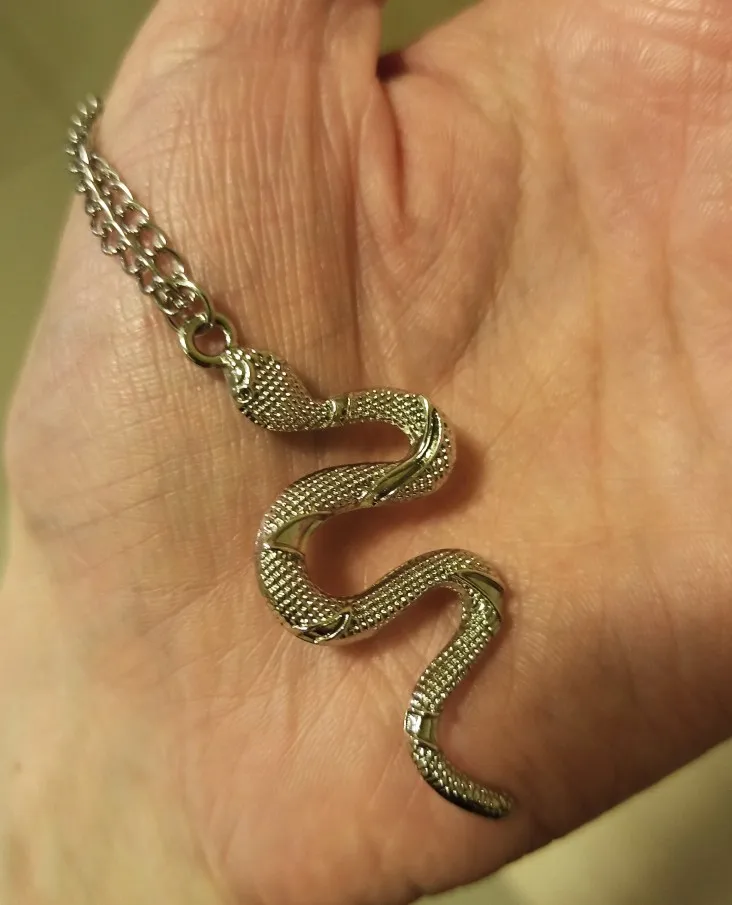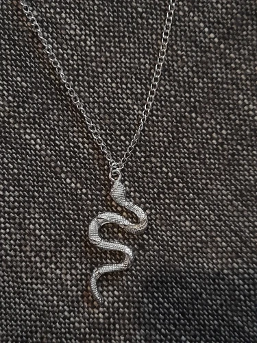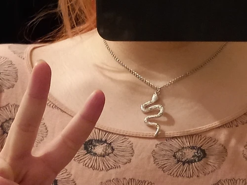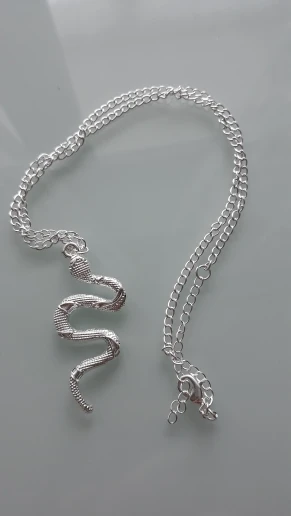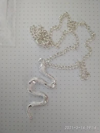 цепочка тонкая, змея красивая, очень белая. на декольте очень круто выглядит. довольна, посоветую, пришло за месяц