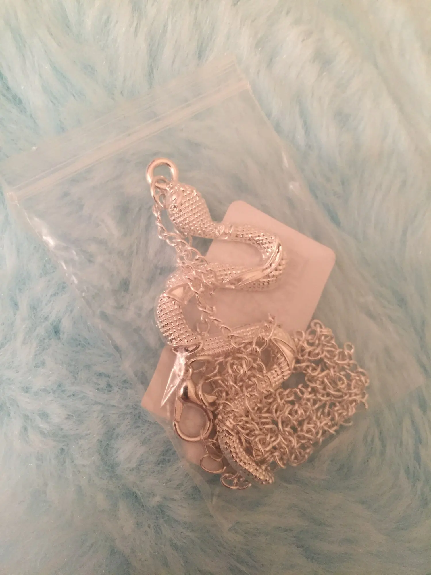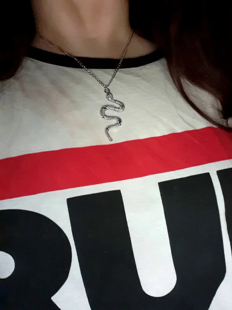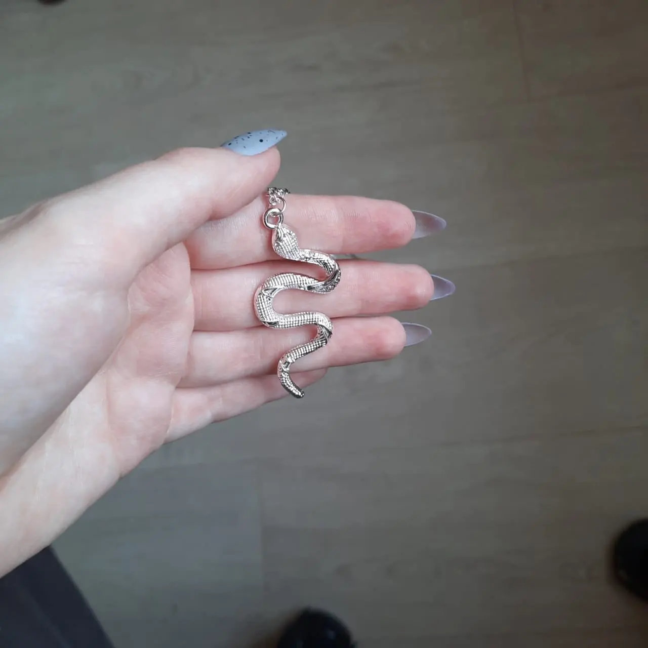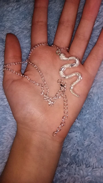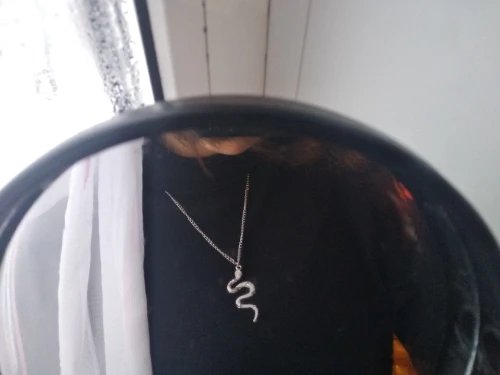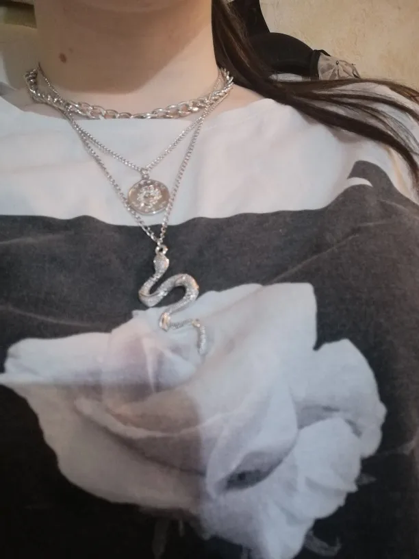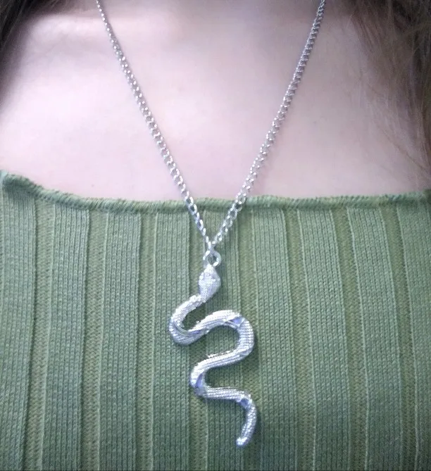 цепочка тонкая, змея красивая, очень белая. на декольте очень круто выглядит. довольна, посоветую, пришло за месяц