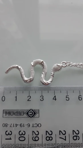 Как и предполагалось, на серебро не очень похоже, слишком белое. Но я брала сразу как брелок на сумочку или для ключей, поэтому все устраивает, сама змейка симпатичная и аккуратно выполнена. Для сравнения на фото с настоящим серебром.Посылка была сборная, поэтому доставка быстрая.