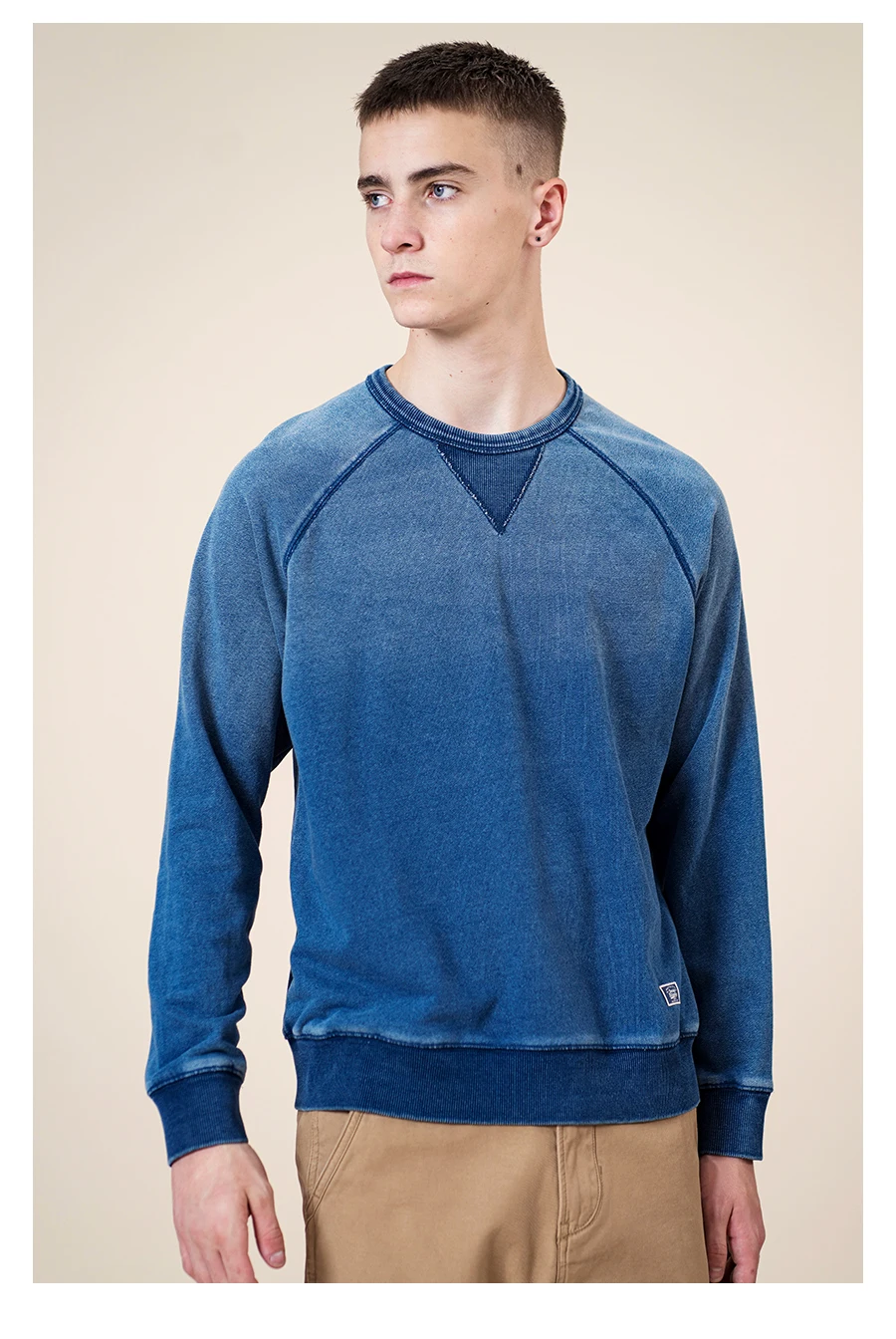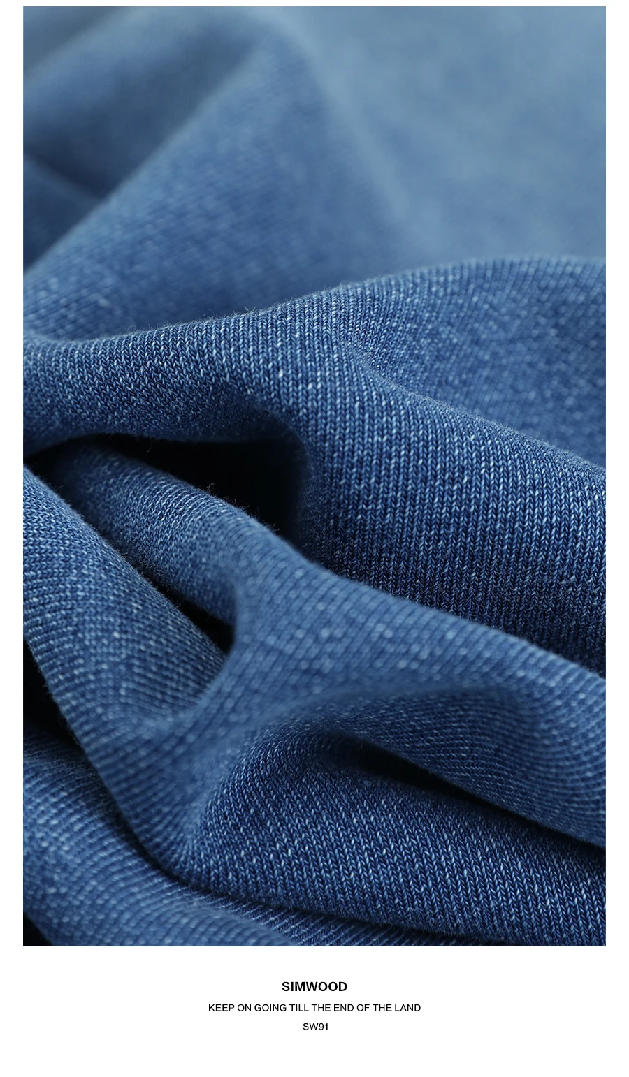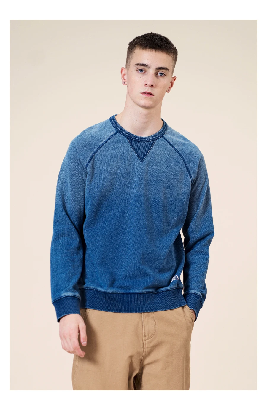 SIMWOOD 2022 Весенние Новые Индиго винтажные толстовки Мужские рукава реглан темное вареное Ретро 360 г плотная ткань Jogger свитшоты