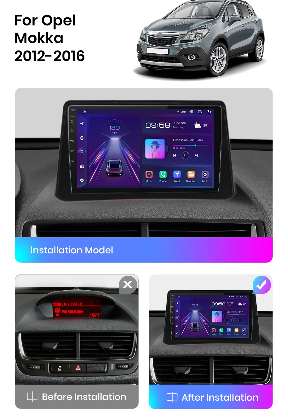 Все пришло быстро. Устанавливали долго, уточнял у продавца Настройки под Опель Мокка 2014 года. Продавец скинул подробно как настроить! Все работает, даже старая панель, кнопки на руле и климат настроились автоматом! Рекомендую!!