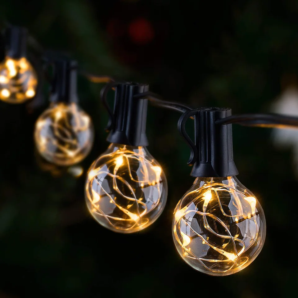 Гирлянда G40 в стиле ретро с круглыми лампочками, праздничная лампа-лента с прозрачными винтажными лампочками из серебристой проволоки, уличное украшение для заднего двора, 25 шт.