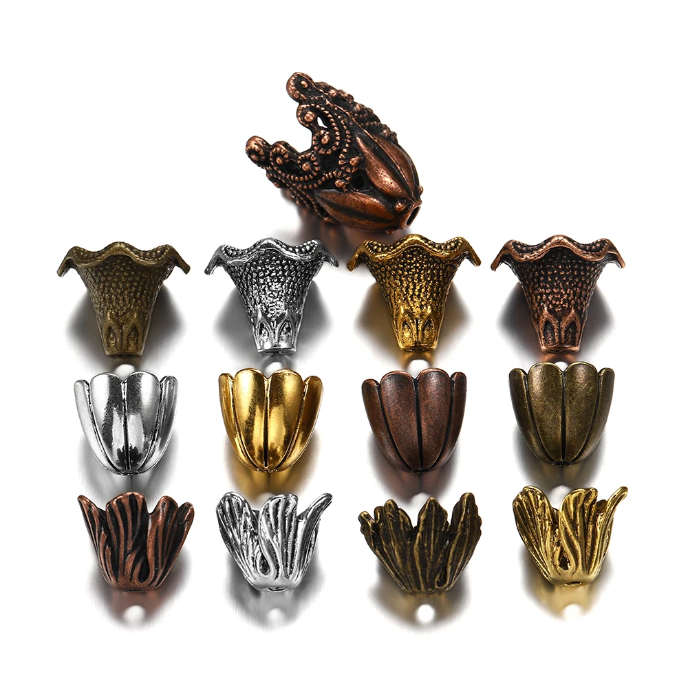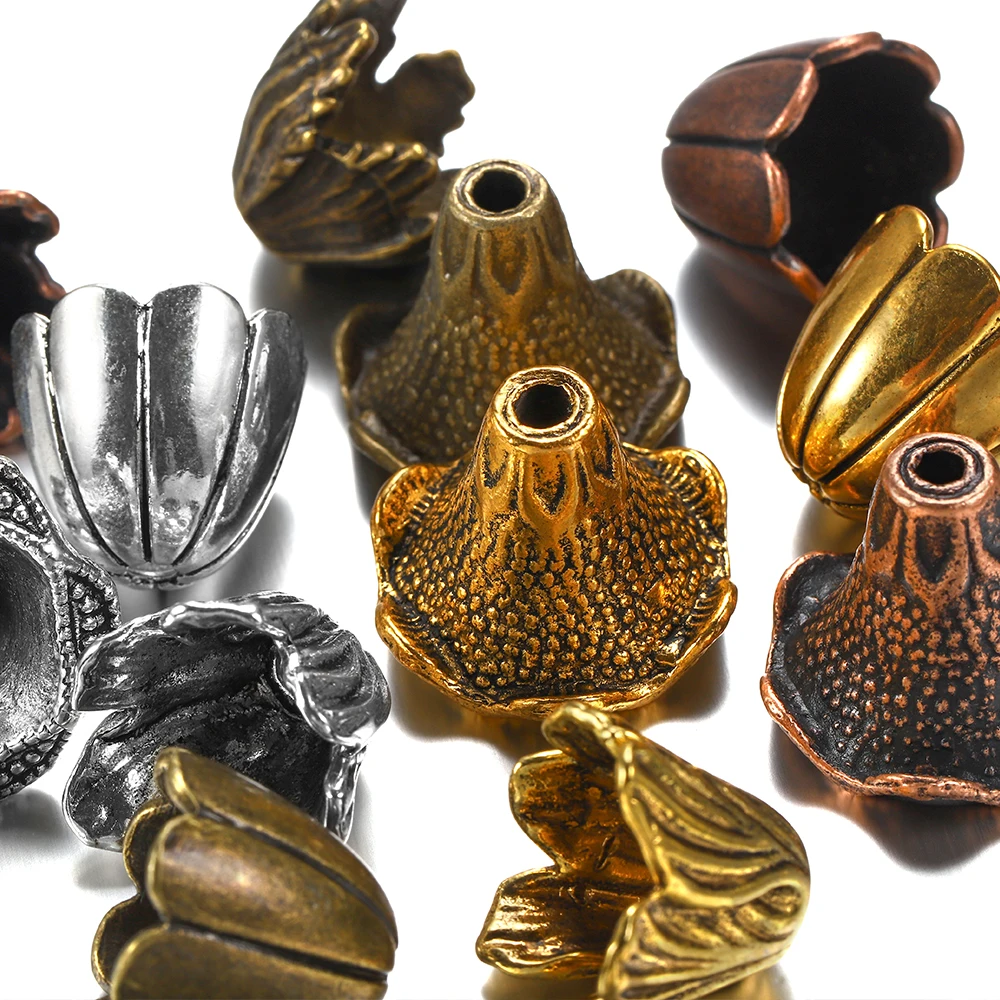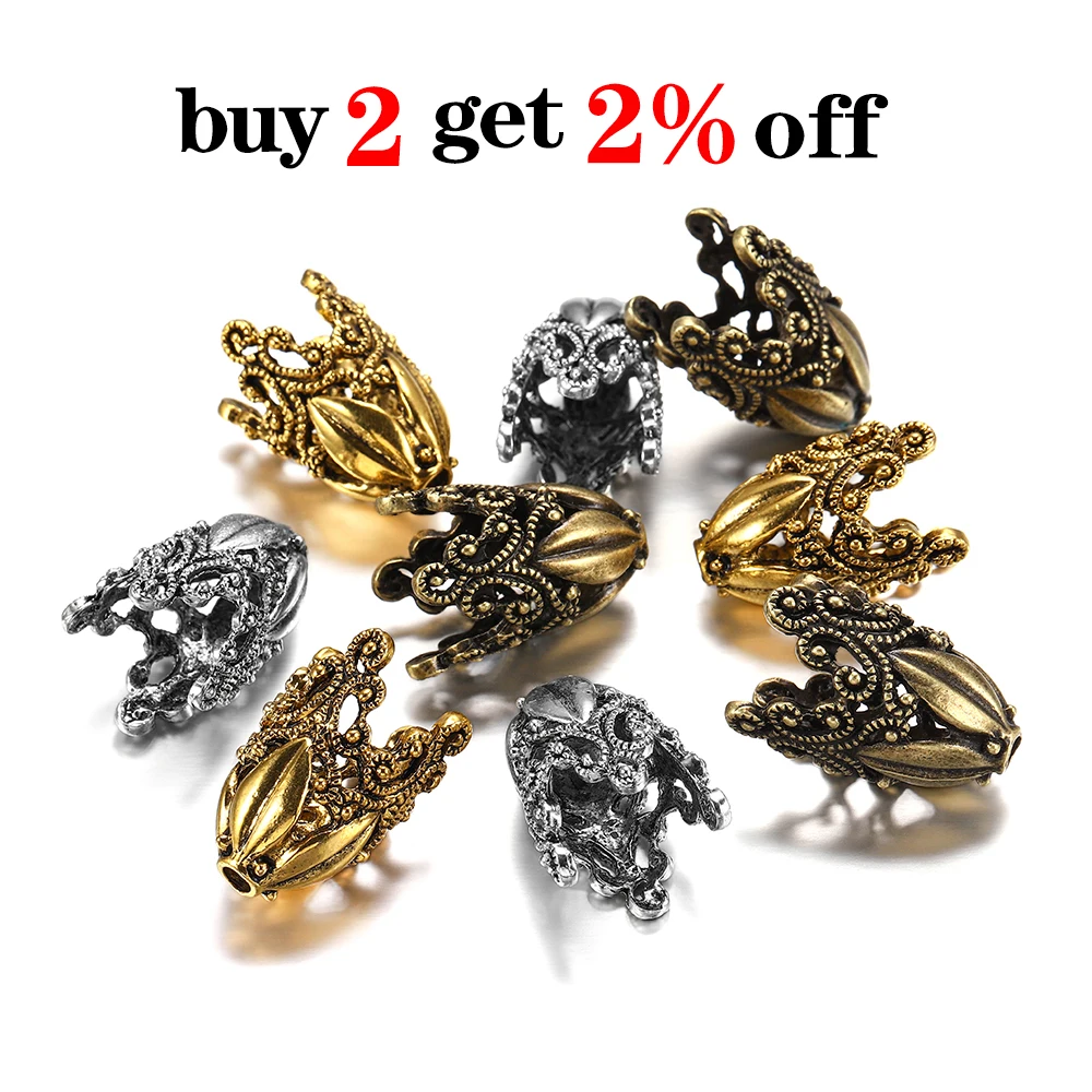Полые бусины в форме цветка из золотого сплава, 2 шт.компл.