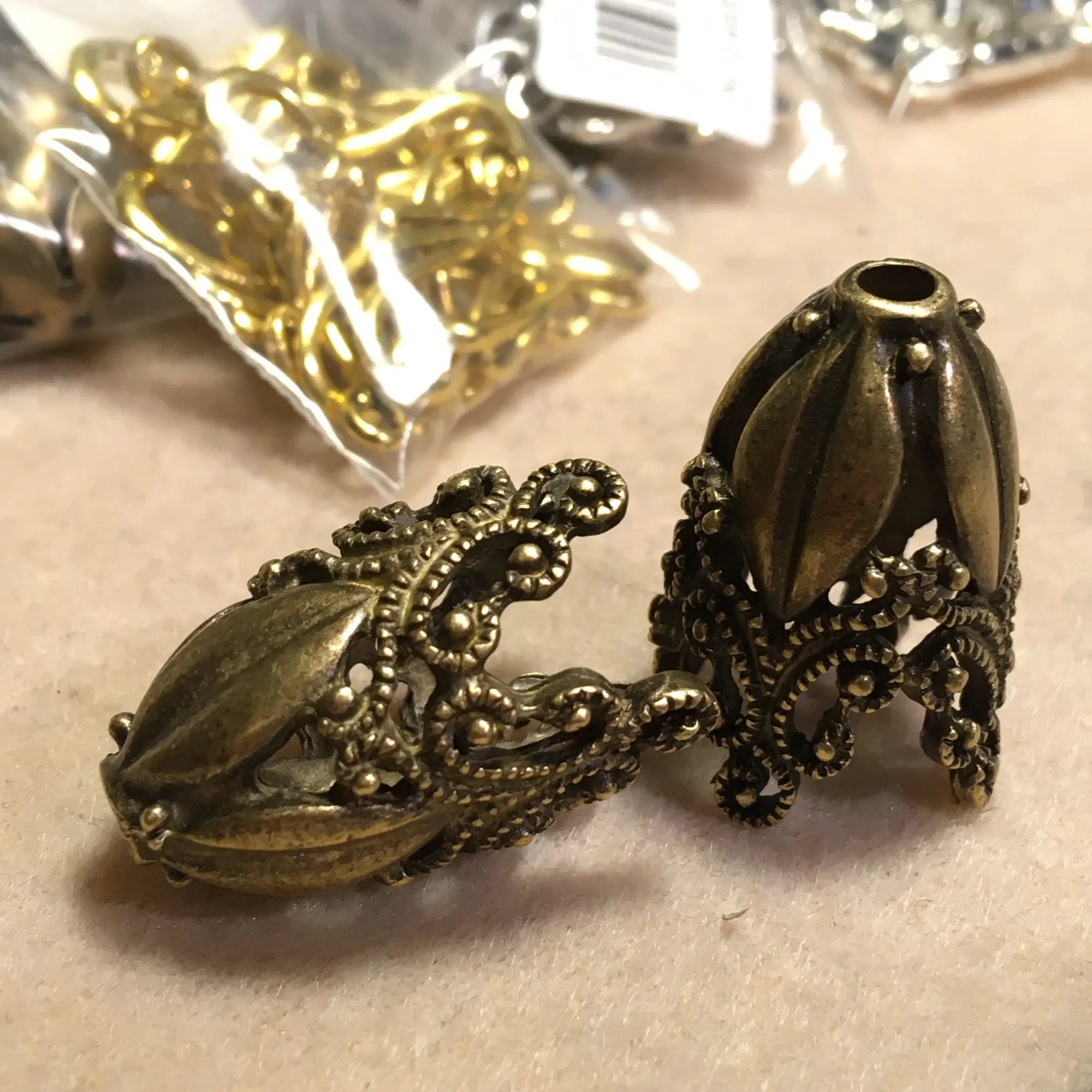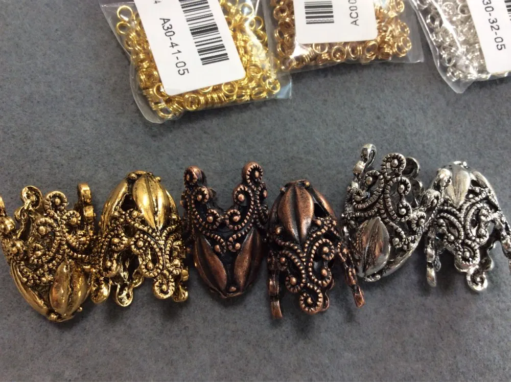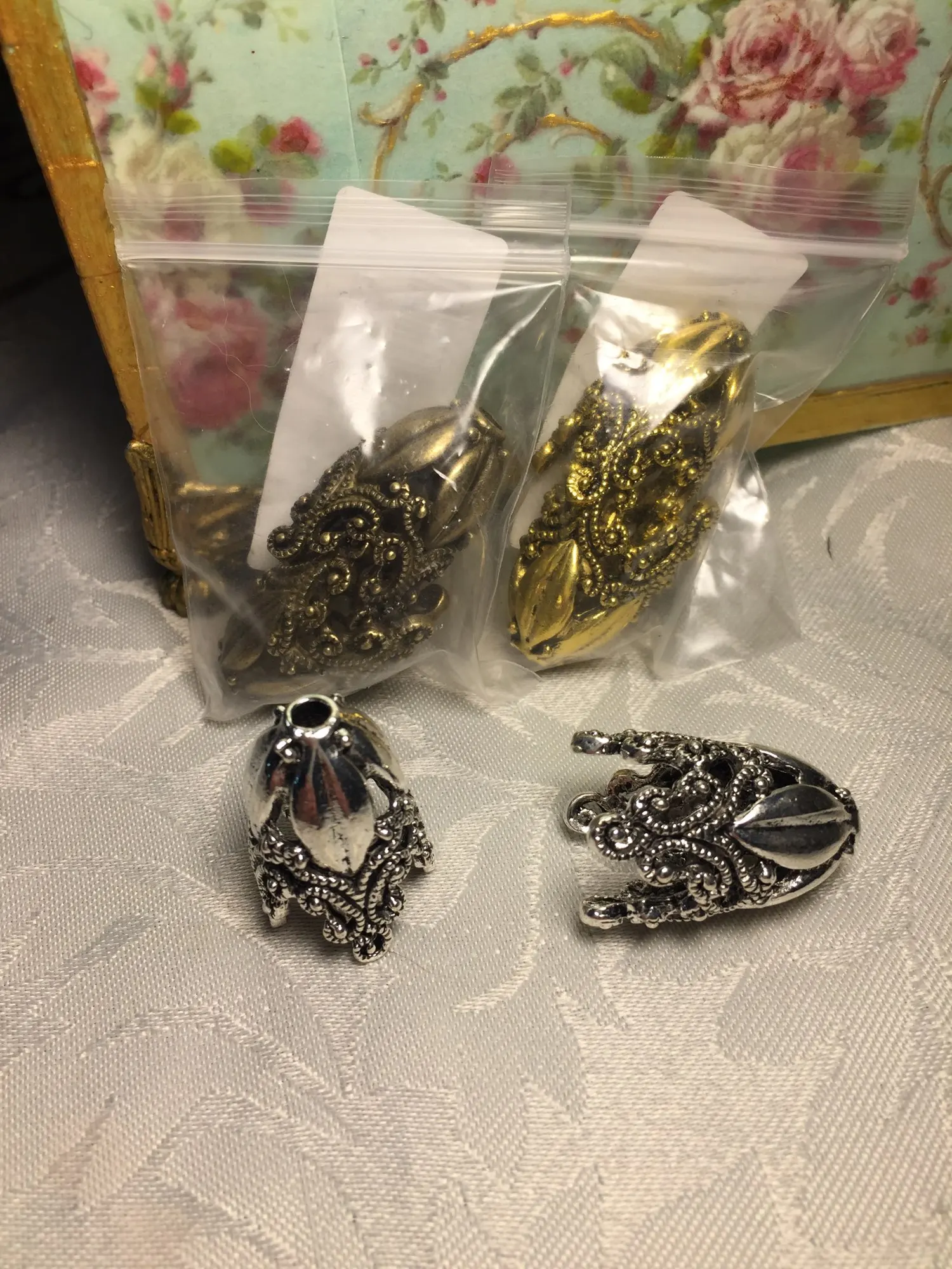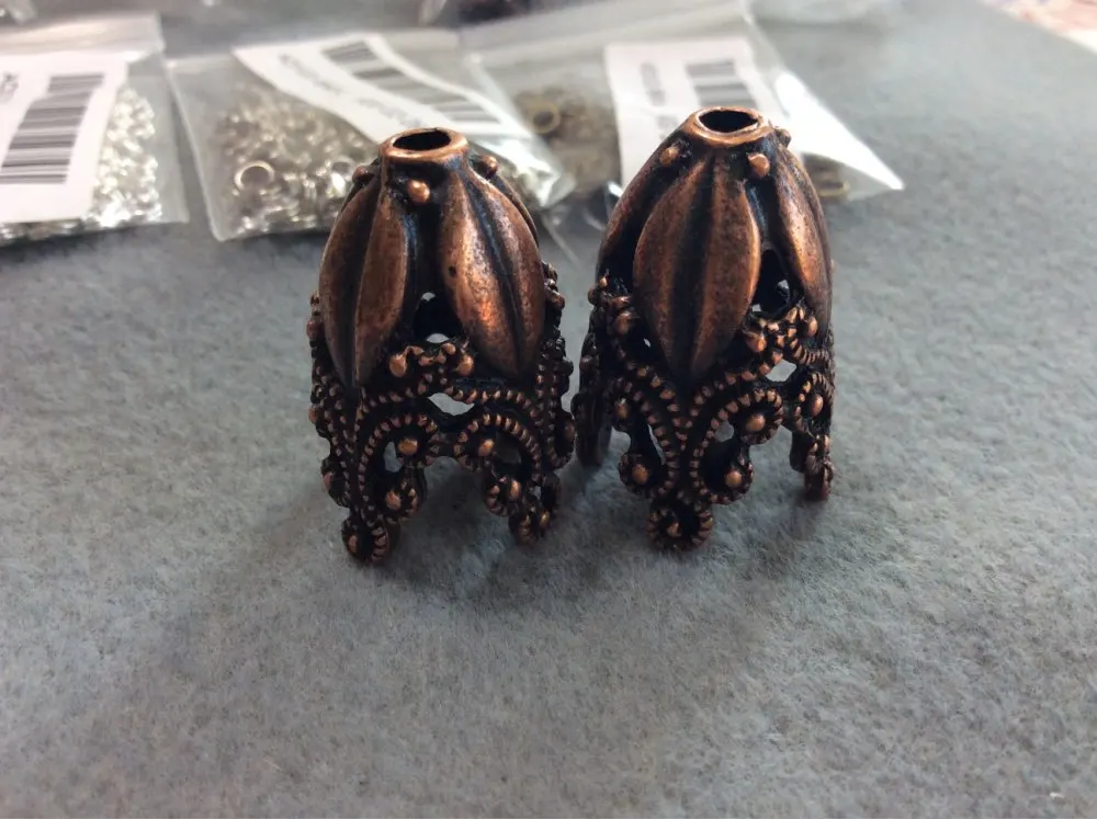 Красивые шапочки/концевики. Крупноваты, но очень дорого выглядят) возьму ещё в дальнейшем. Как сделаю колье добавлю отзыв с фото