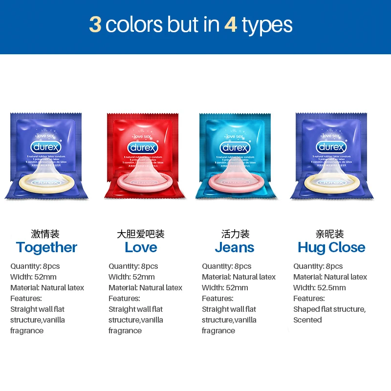Презервативы из натурального латекса Durex, 100 шт., 4 вида, ультратонкие, со смазкой, рукав для пениса для взрослых