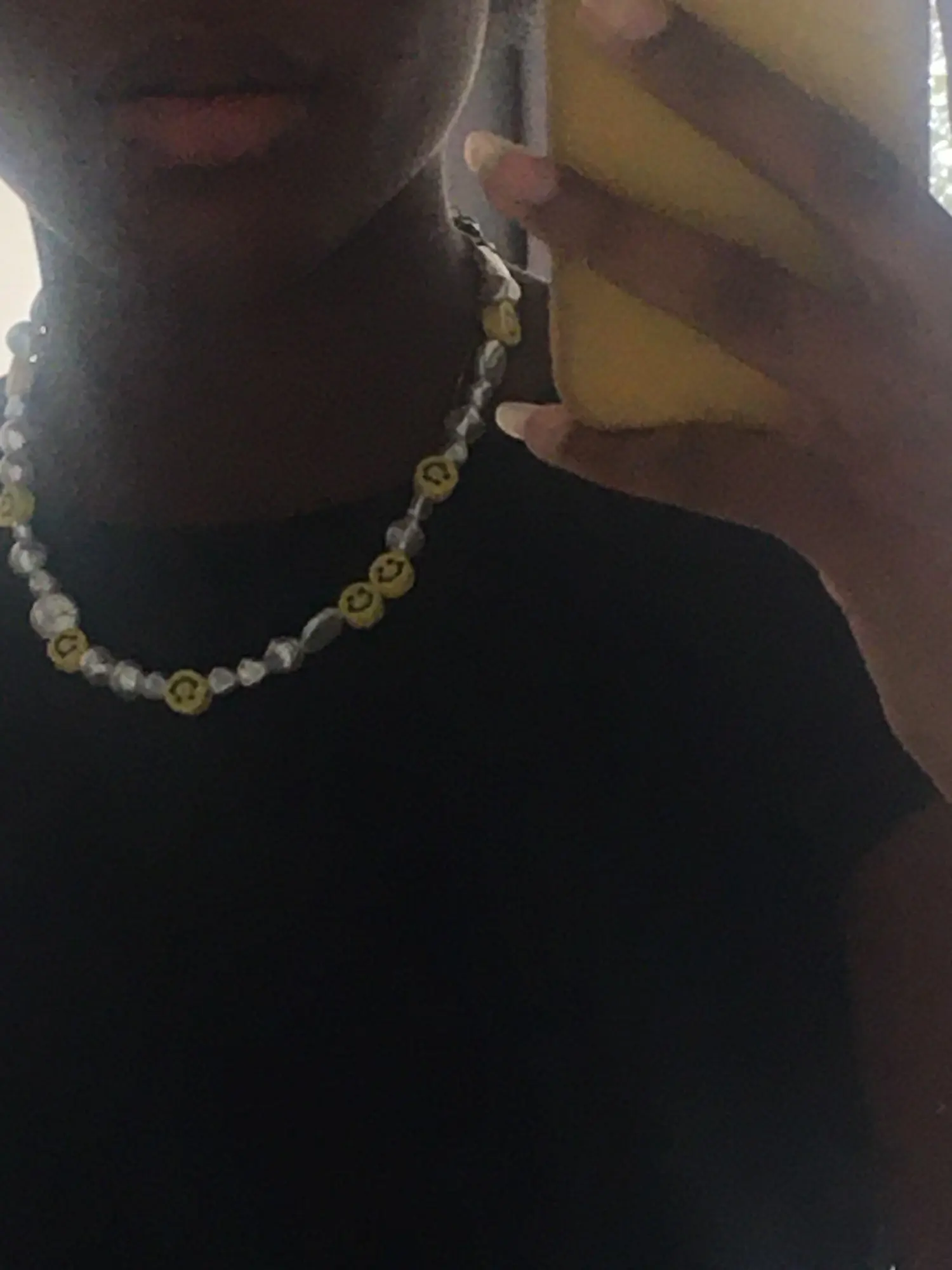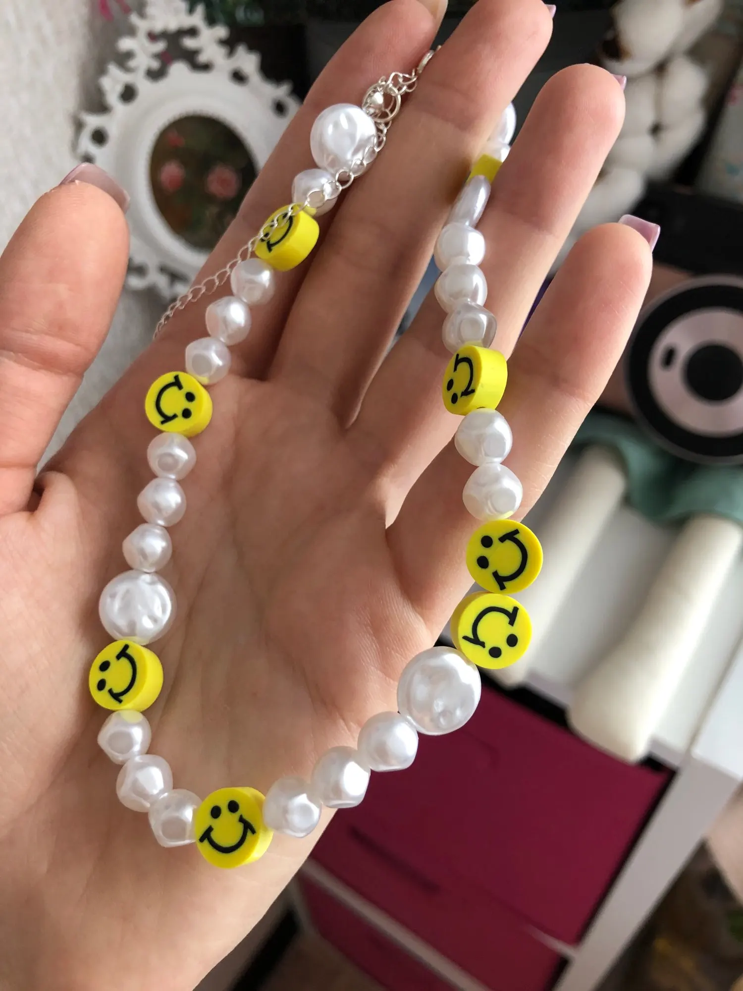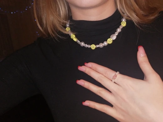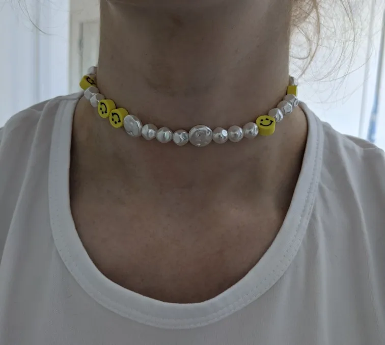 Милое ожерелье, нежное, легкое и смайликовое, изготовлено из резинок. Я рад