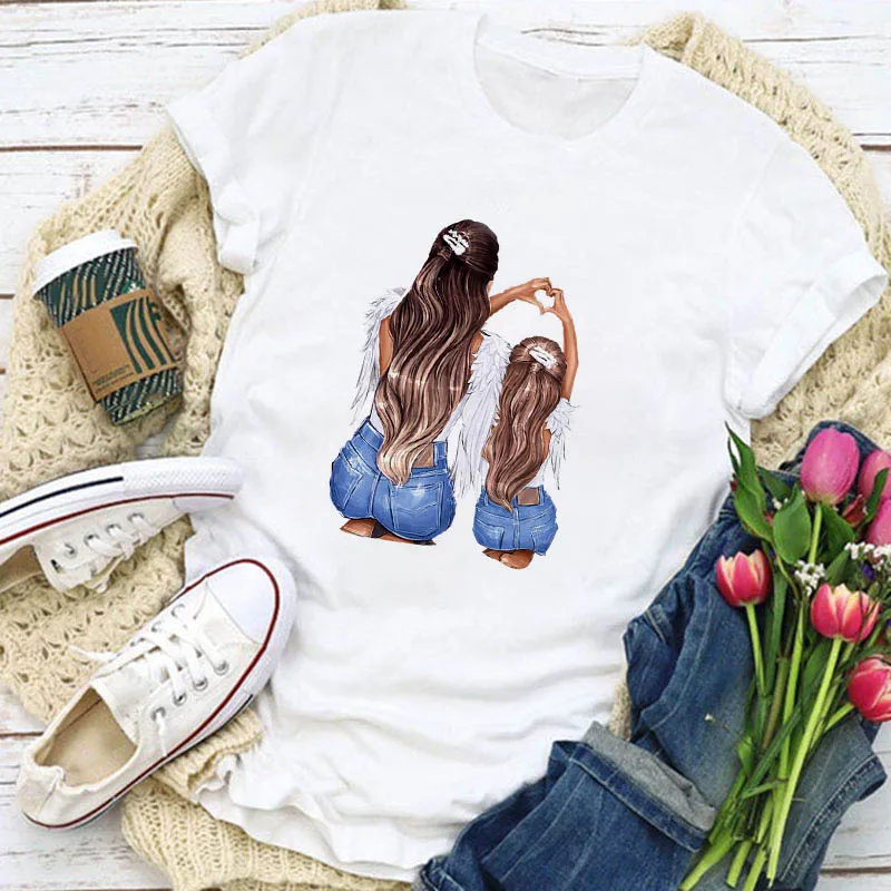 Женская футболка с рисунком из мультфильма для мамы и дочки; Женски...
