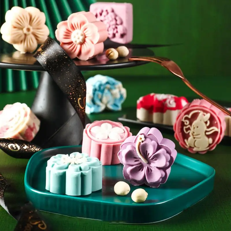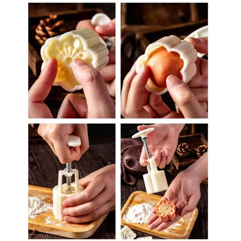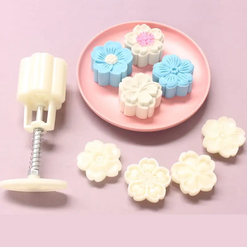 Форма для лунного торта 50 г, 4 шт. штампы в виде гибискуса, вишни, Ручной пресс, форма для кондитерских изделий в виде Луны, торта