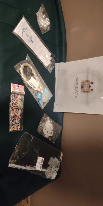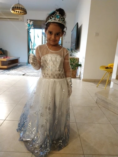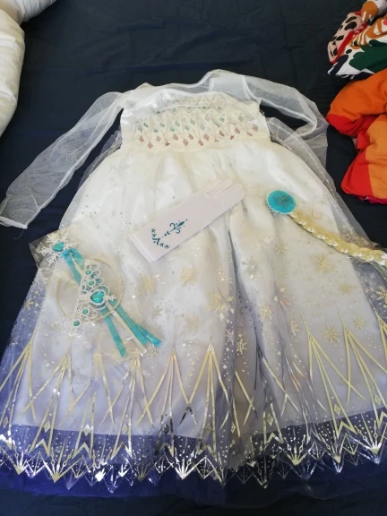 Очень красивое платье и аксессуары. Дочери очень понравилось. Каждый предмет упакован индивидуально. У нас есть палочка, ожерелье, коса, перчатки, корона. Спасибо продавцу. Настоятельно рекомендуется.