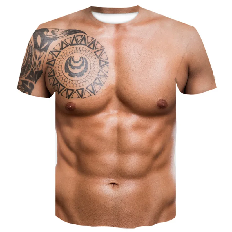 Новинка 2020 года! Футболка мужская в стиле Харадзюку, Обнаженная футболка с интересным 3D рисунком, странная рубашка для груди