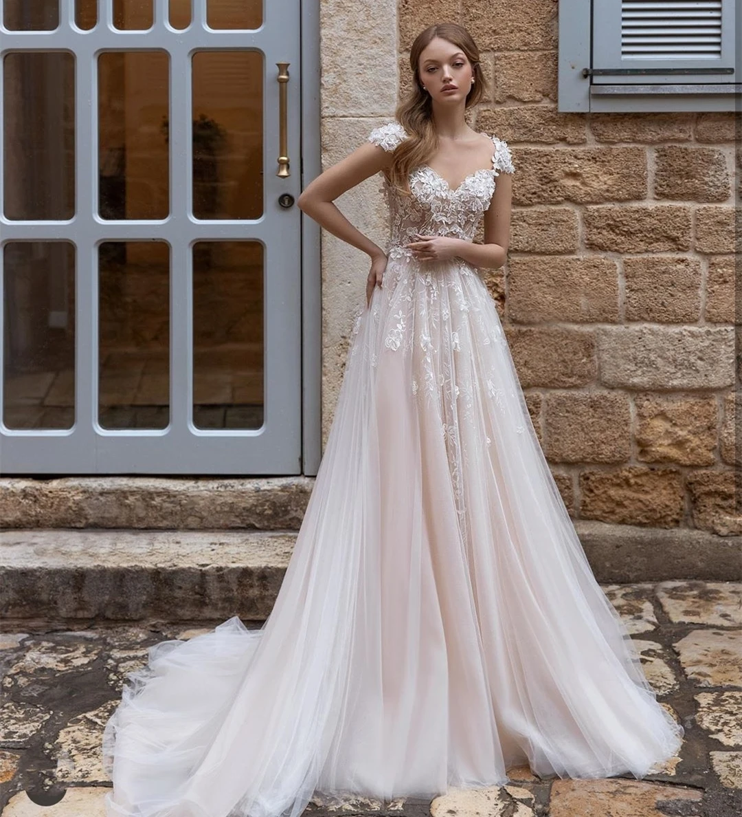 Свадебное платье А-силуэта, кружевное платье для невесты с аппликац...