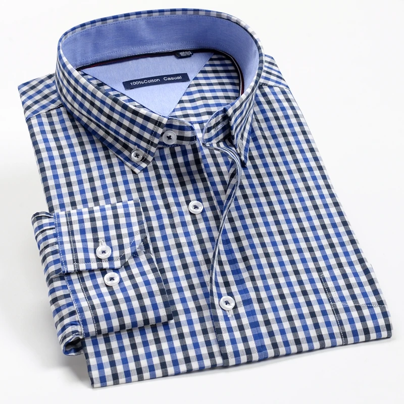 XXL-12XL большие размеры; Классические элегантные рубашка в клетку 2021 брендовая одежда Повседневная Деловая мужская Свободная рубашка с длинным рукавом 100% хлопок