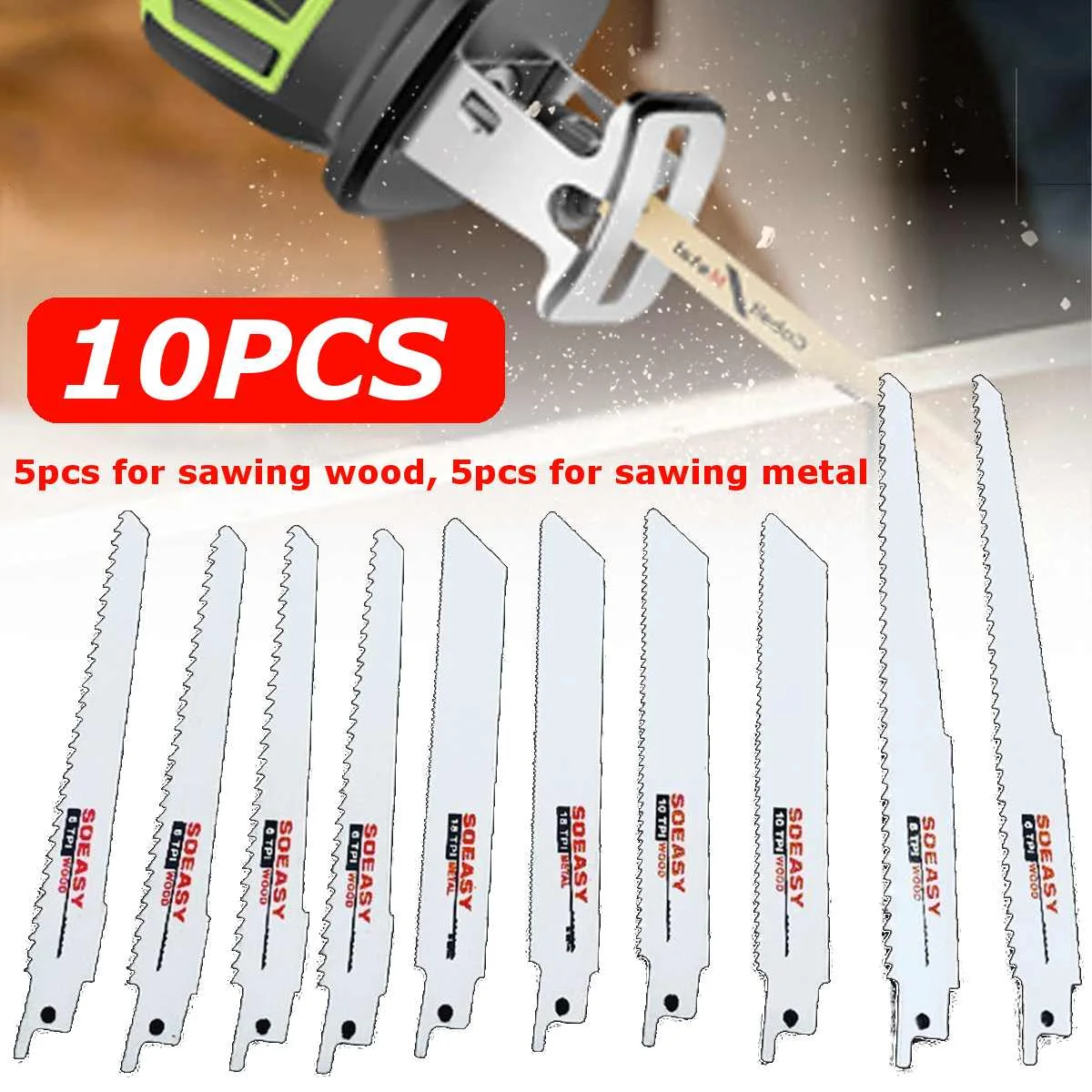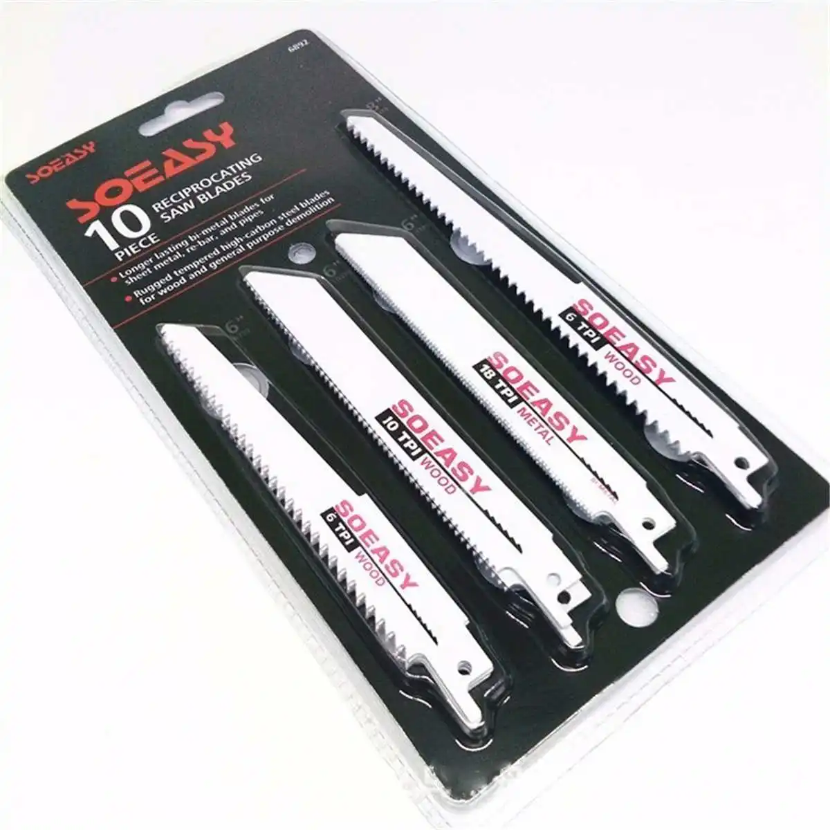 Набор лезвий сабельной пилы для резки металла и дерева из высокоуглеродистой стали, 148-195 мм, 10 шт.