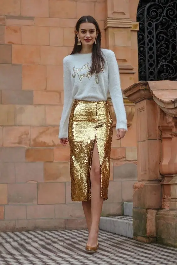 Женская юбка до середины икры, с блестками, золотистого цвета, на заказ, деловая, вечерняя, юбки, беспланая доставка