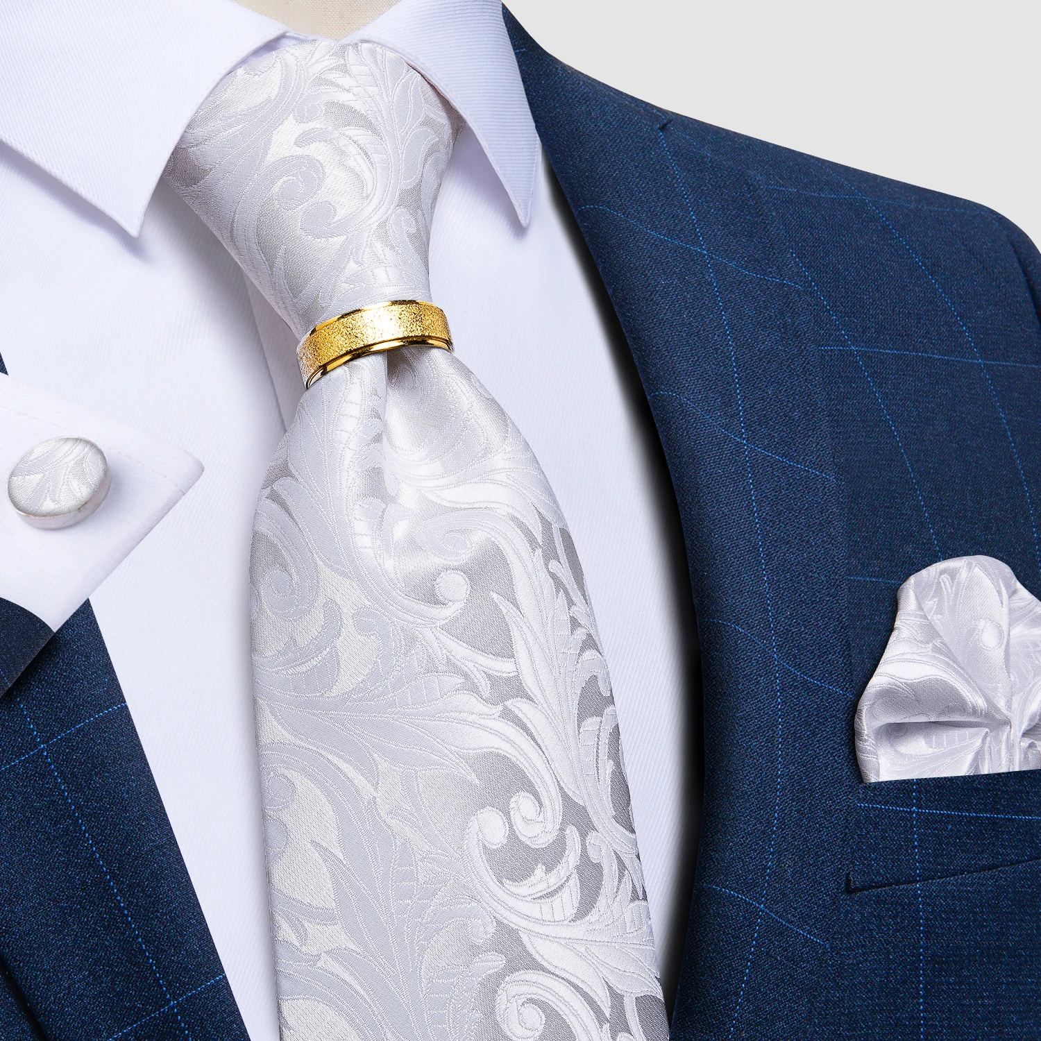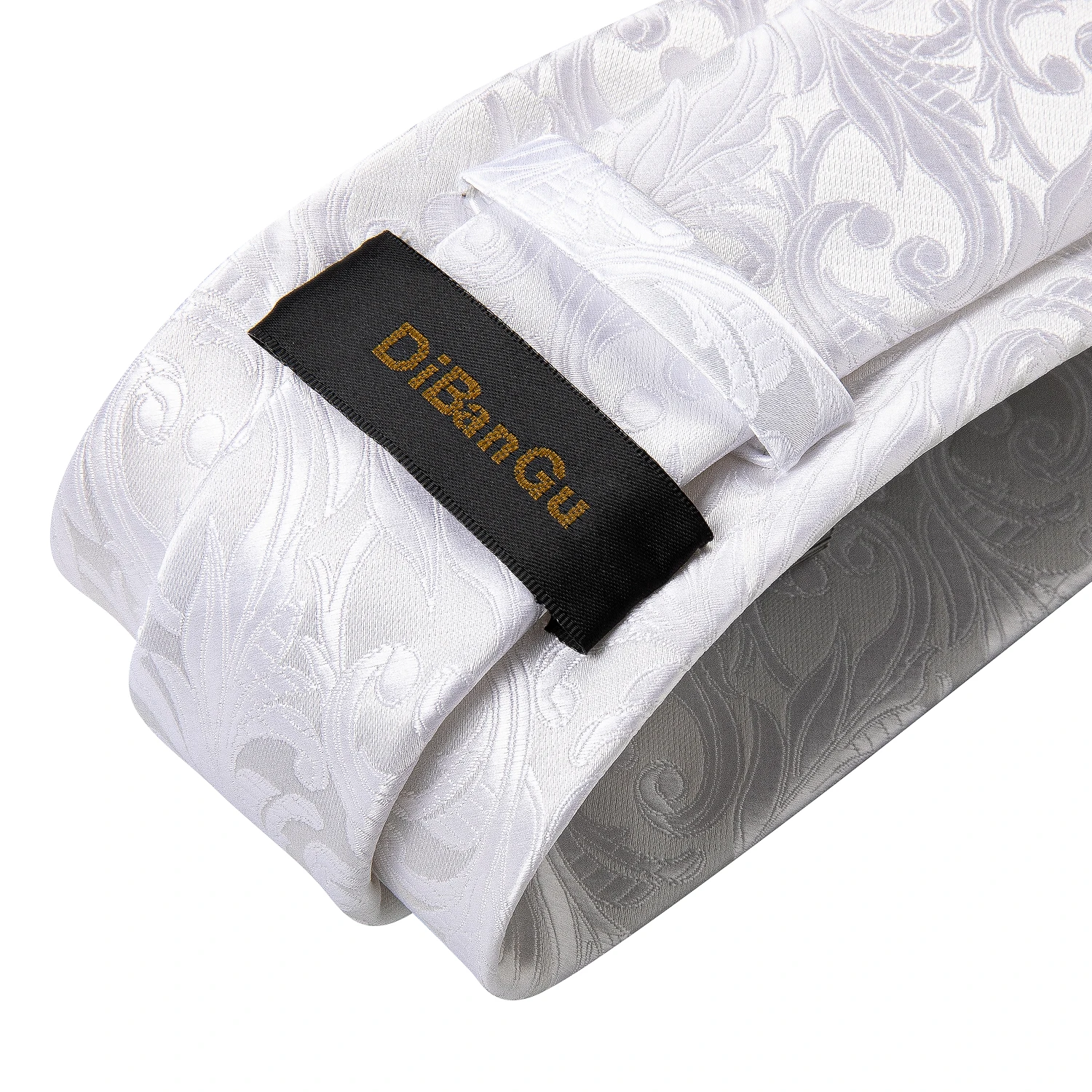 Классические мужские шелковые галстуки 8 см, модные белые цветочные бриллиантовые карманные Квадратные запонки, набор галстуков, мужской подарок DiBanGu
